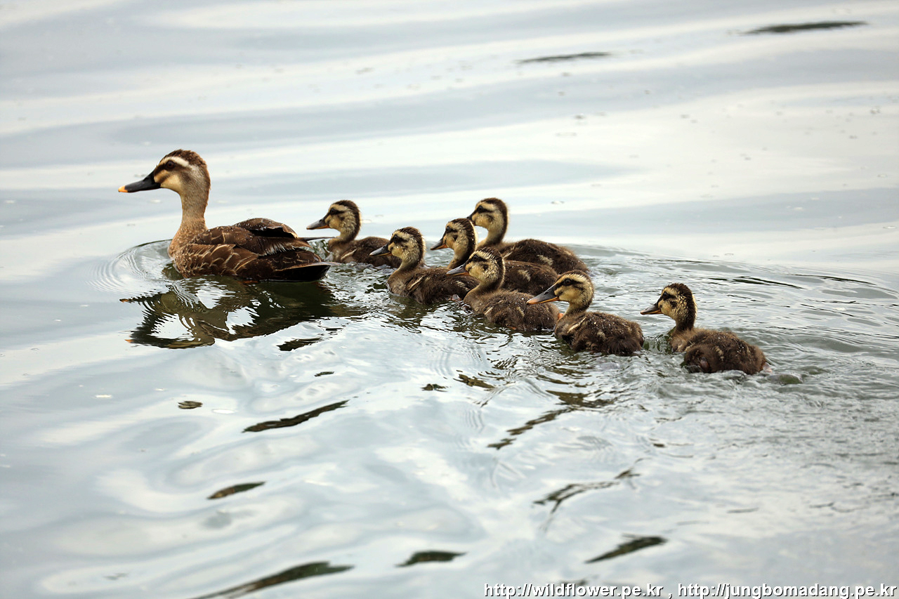 흰뺨검둥오리 - 성조, 유조(어린새). 크롭 사진입니다.