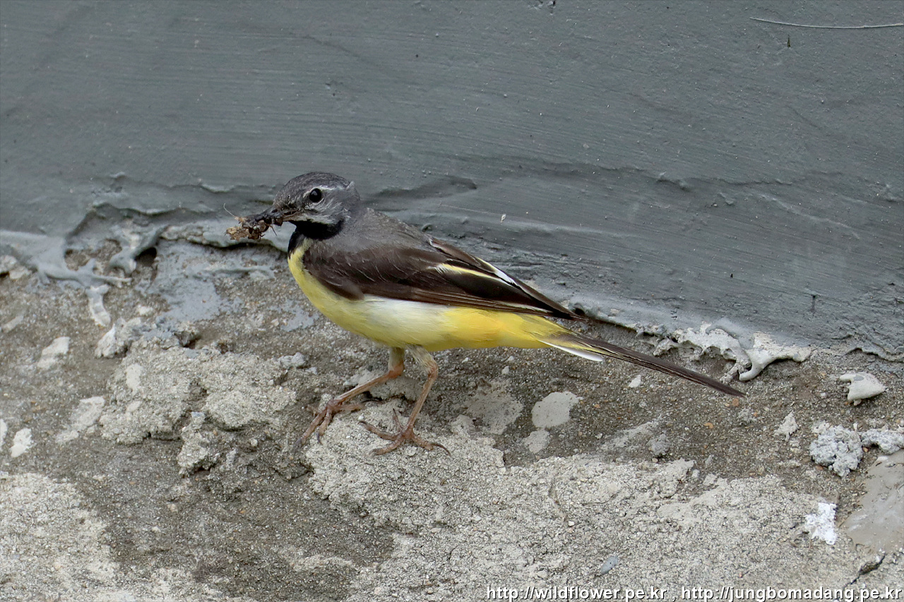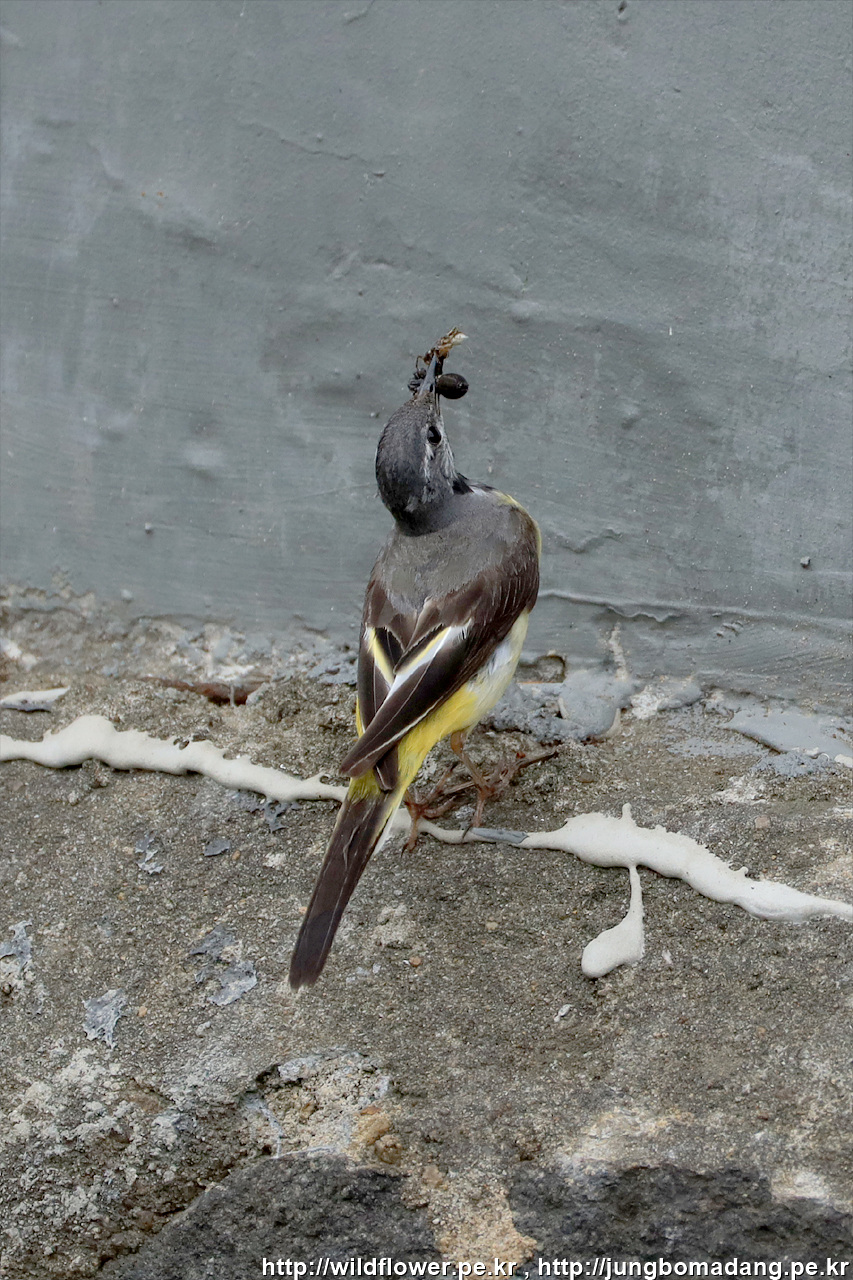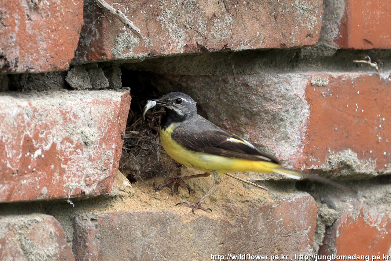 노랑할미새 - 둥지의 새끼에게 먹이를 주고 분변을 처리하는 모습입니다.
