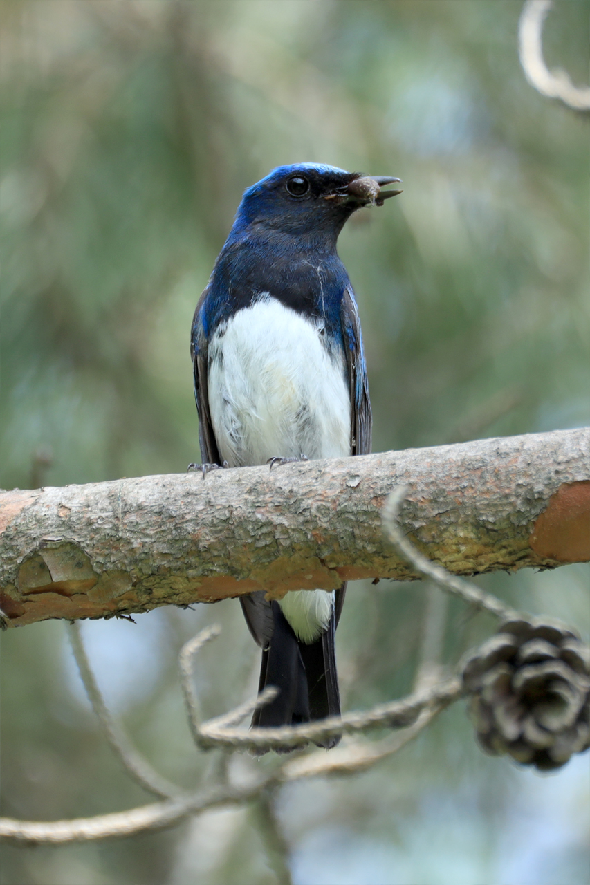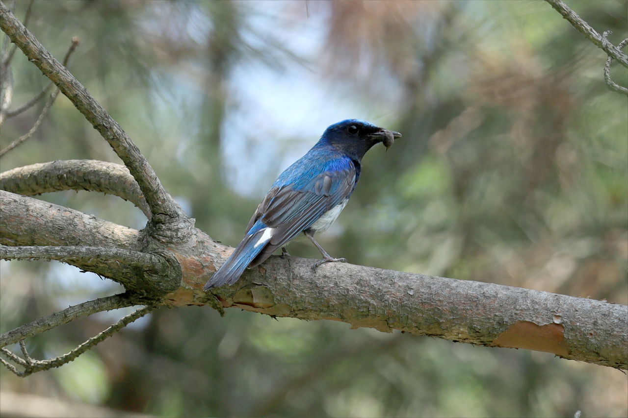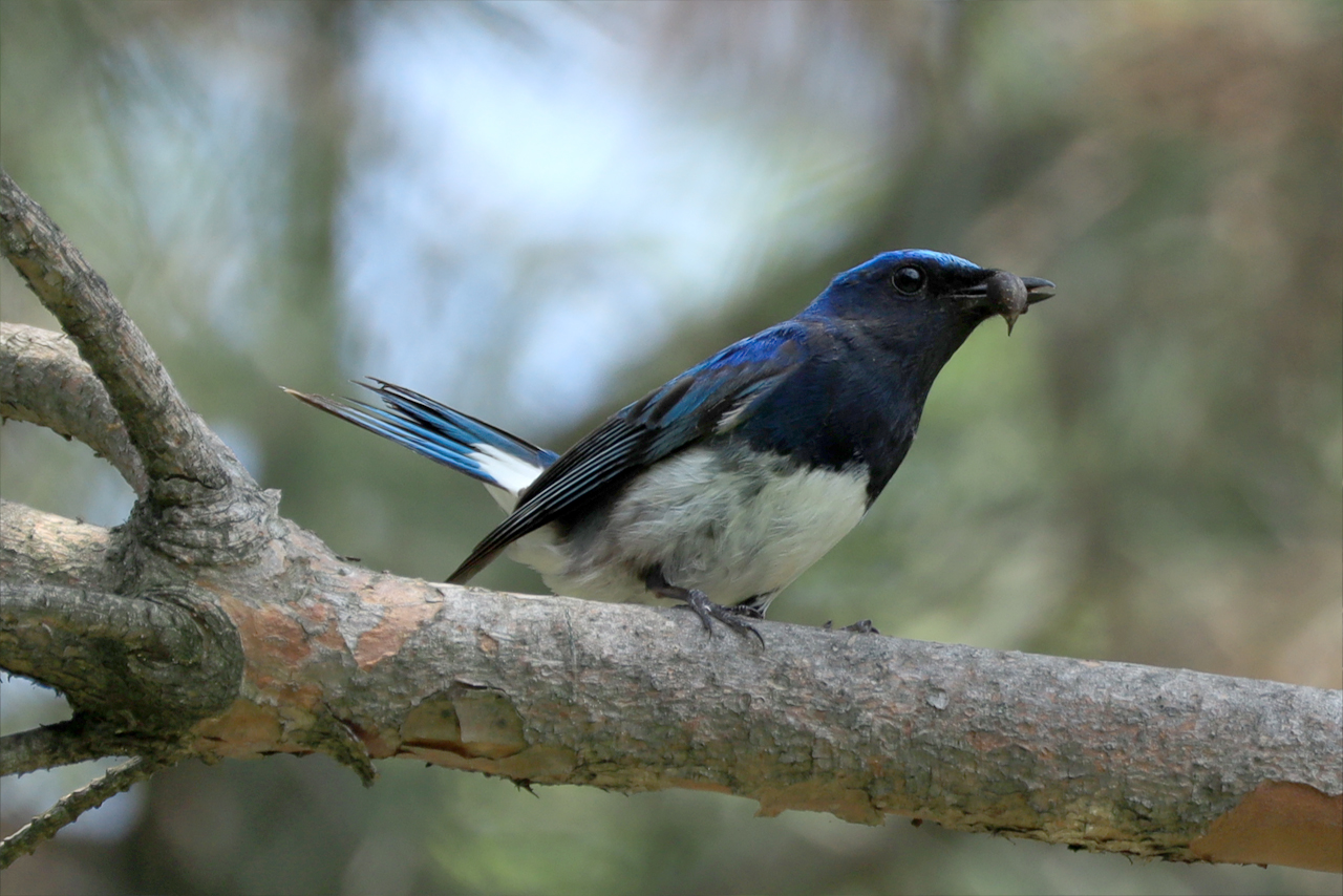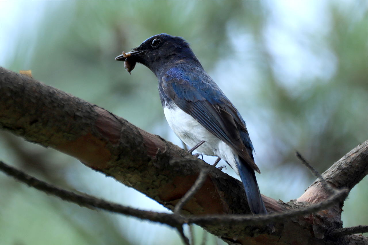 큰유리새 - 수컷. 크롭 사진입니다. 제주에서 암컷은 봤는 데 수컷은 처음 보네요. 먹잇감을 들고 둥지로 가던 길에 저와 마주쳤던 것으로 보입니다.