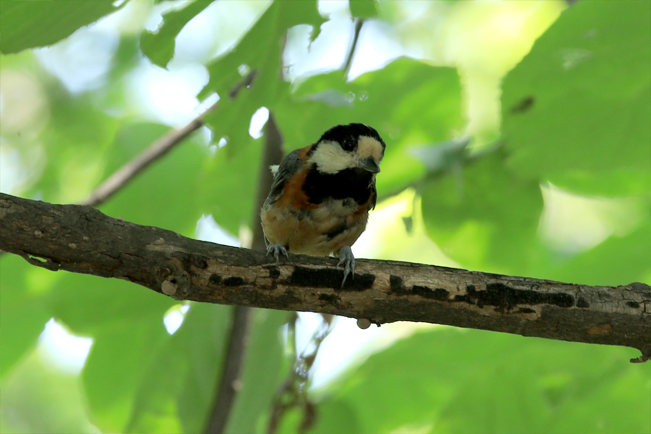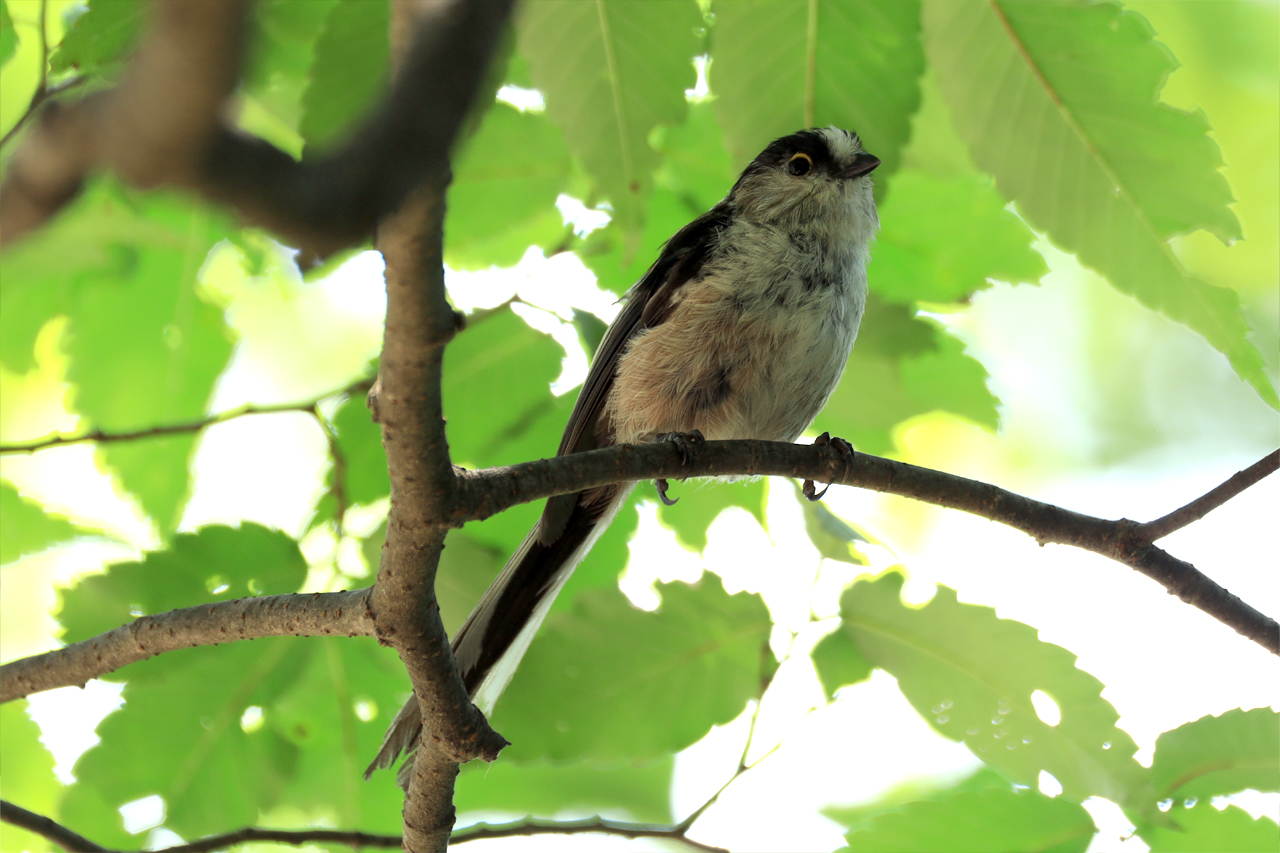 오목눈이 - 크롭 사진입니다. 원래 정신없이 돌아다녀서 찍기 쉽지 않았는 데, 이날은 나뭇잎 그늘 아래서 쉬는 지 한동안 멈춰 있네요.