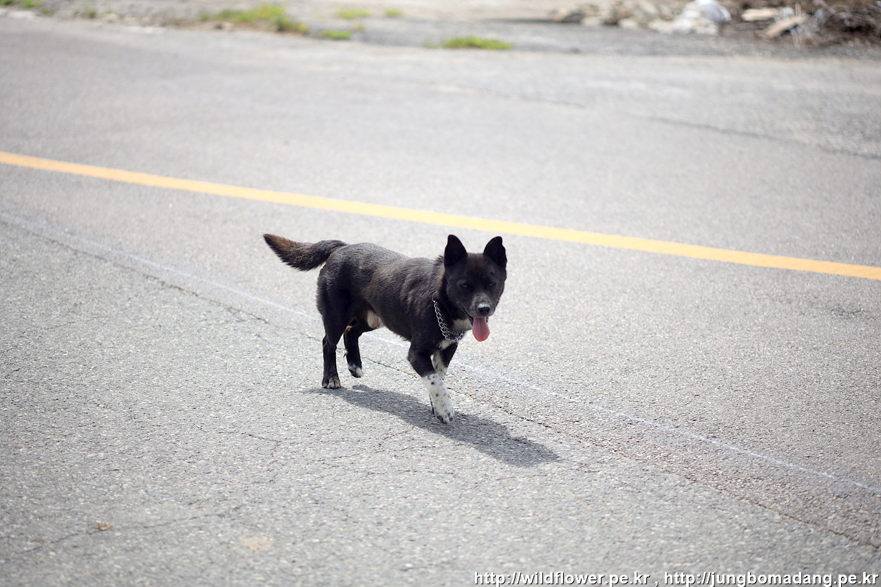 산책중인 동네 강아지