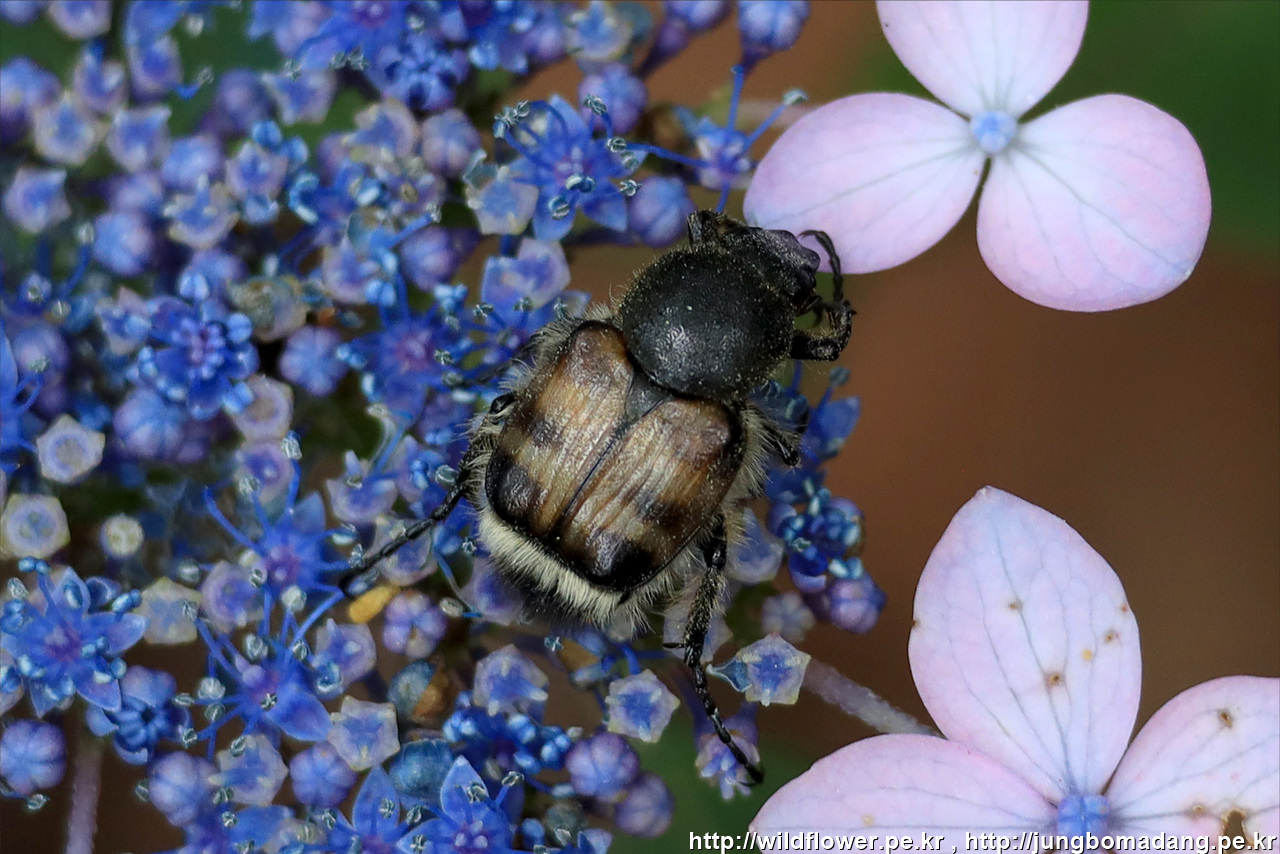 호랑꽃무지 - 산수국 위에 앉아 있습니다.