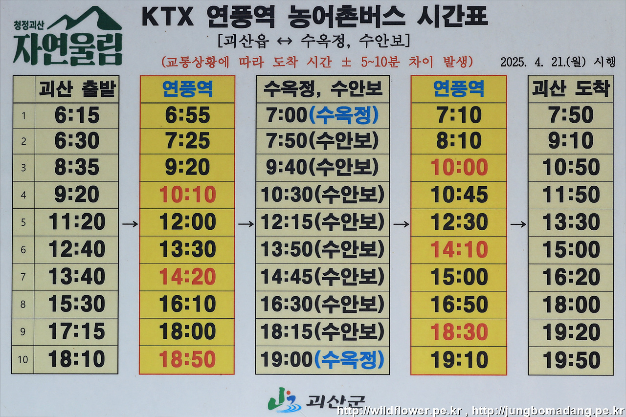 잘 알아보니, KTX로 판교~연풍~문경으로 운행하는 열차를 이용한 뒤 연풍까지 걸어서 1시간 거리지만, 농어촌버스가 열차 하차 시간에 맞춰 운행되기에 5분이면 연풍역에서 연풍정류소까지 편리하게 이용할 수 있습니다.