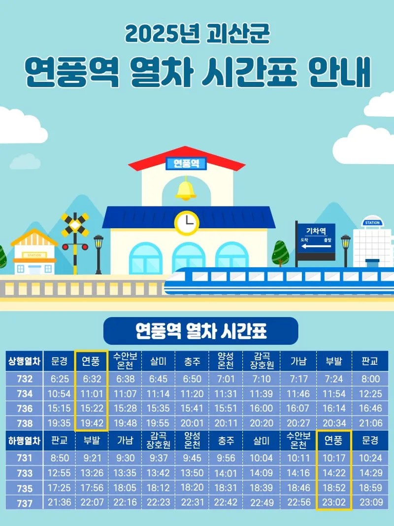 2025년 괴산군 연풍역 열차 시간표 안내