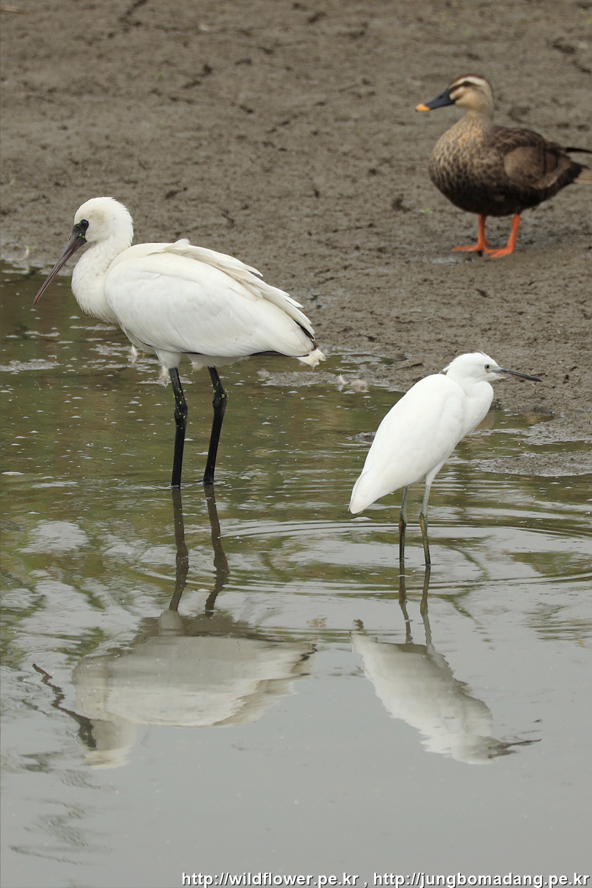 저어새(좌측)와 쇠백로(우측) 크기 비교입니다.