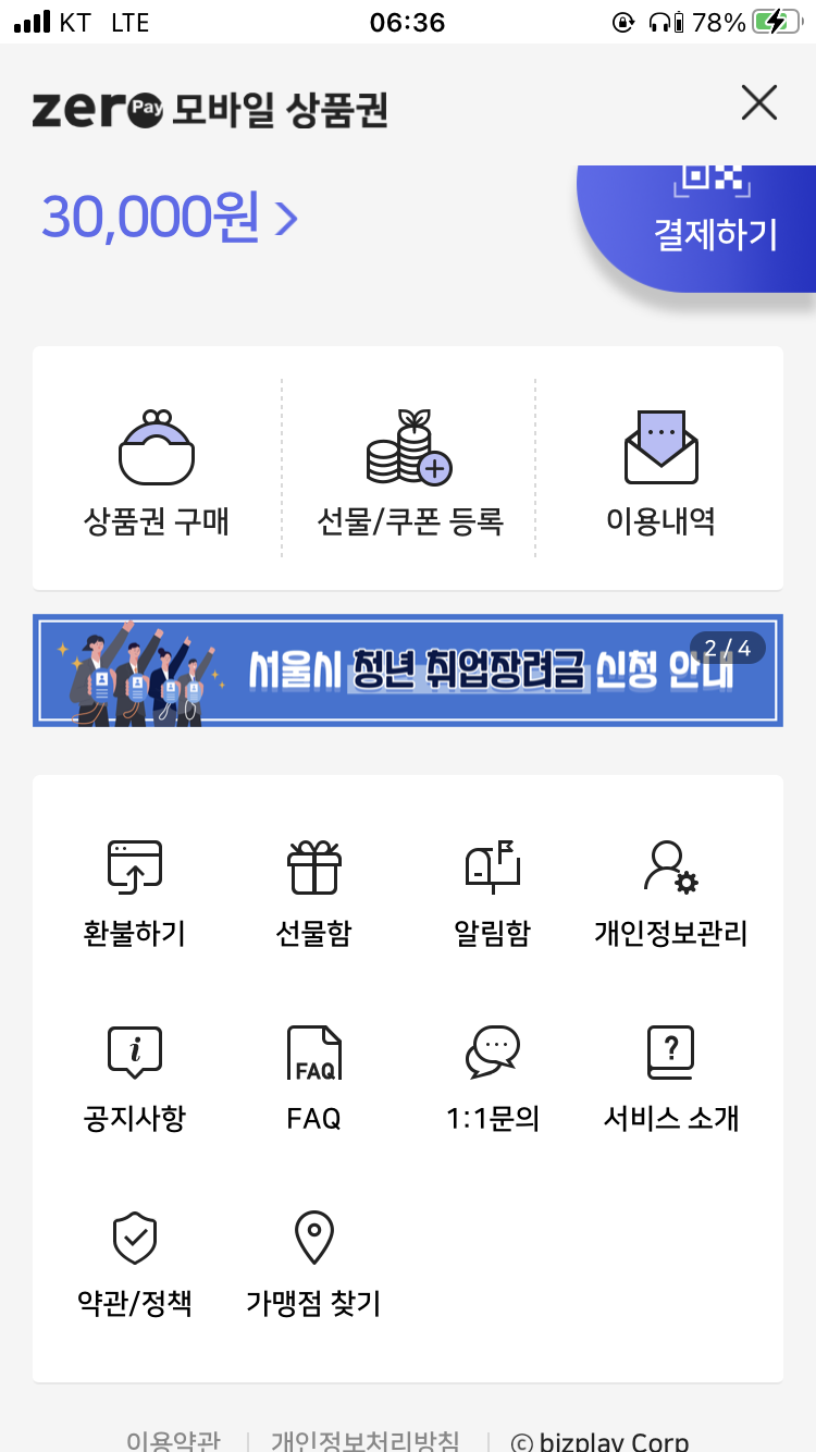 17000원 결제 마치고 나니 푼돈이 남아 에잇! 다시 충전하기 귀찮아 막걸리 쇼핑은 다음 기회에~~