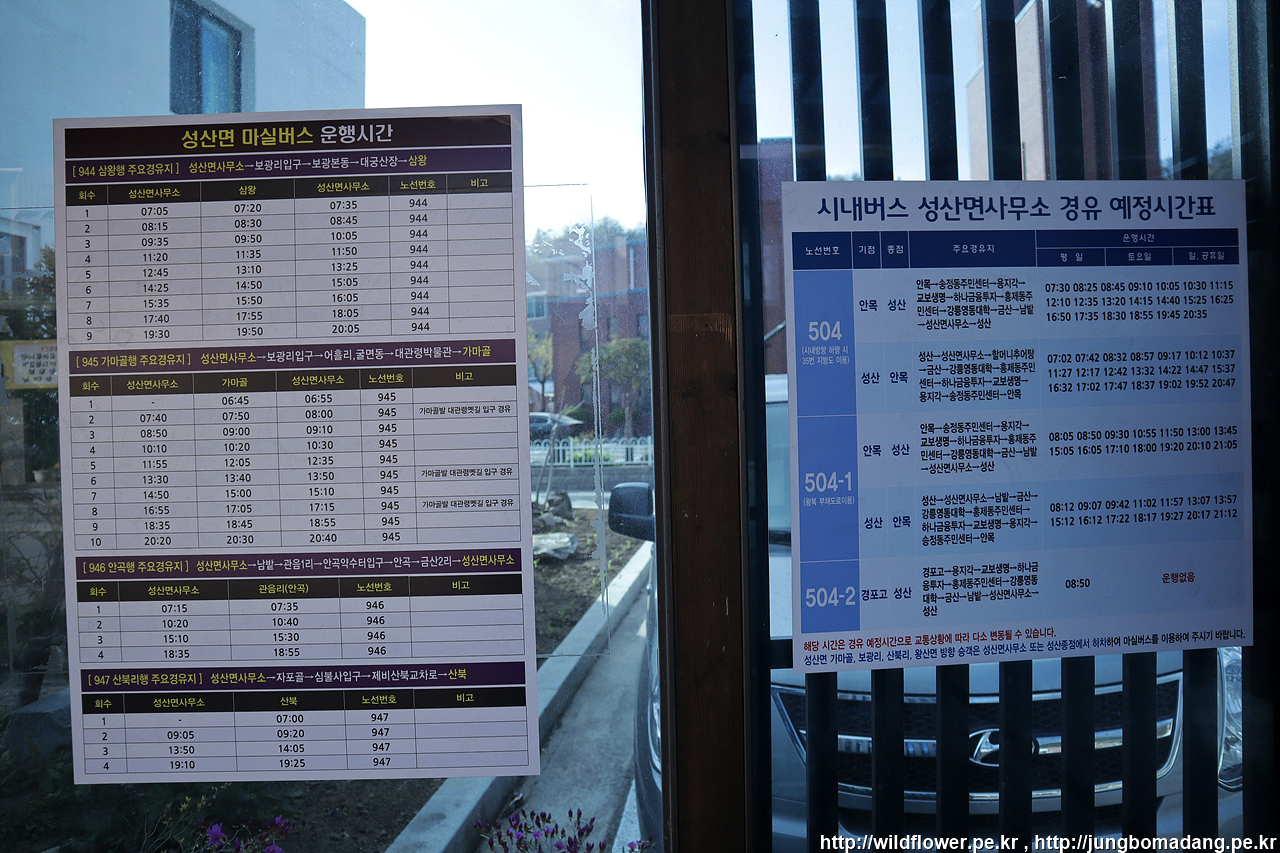 드디어 그 문제의 성산에 도착합니다. 여긴 945번 버스 시간표가 붙어 있네요. 대중교통을 점점 불편하게 만드는 인간들 정말 싫습니다.