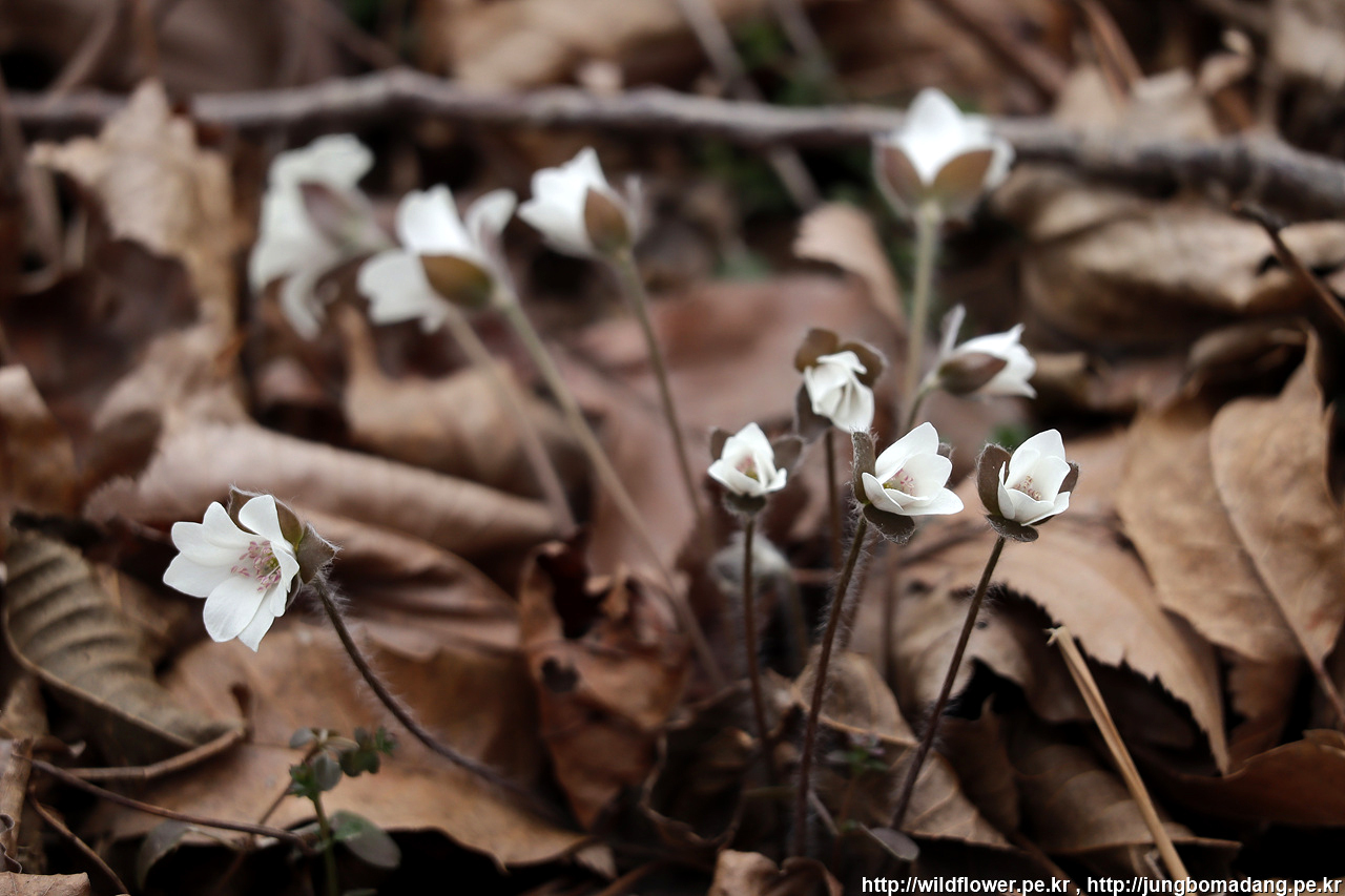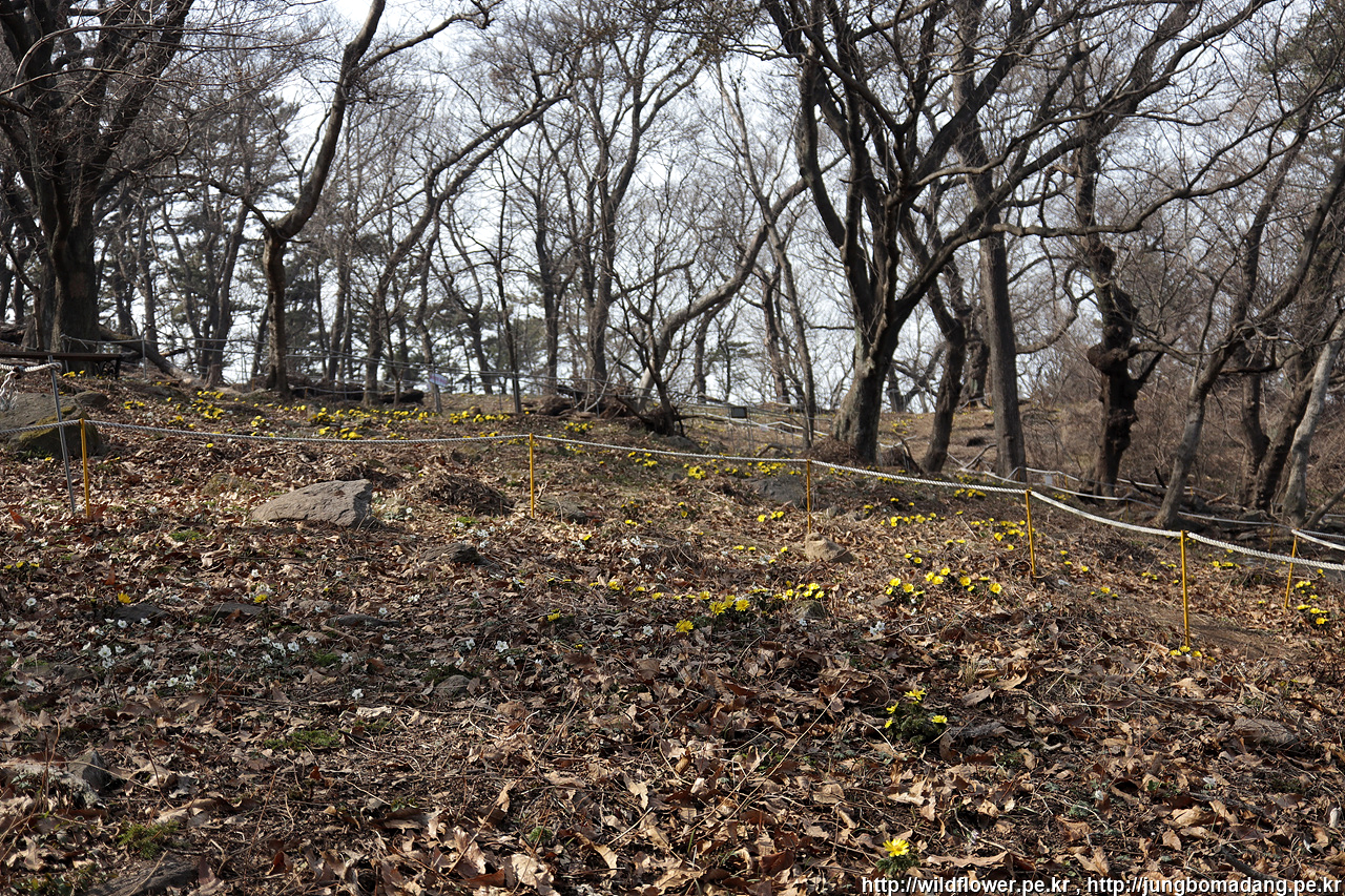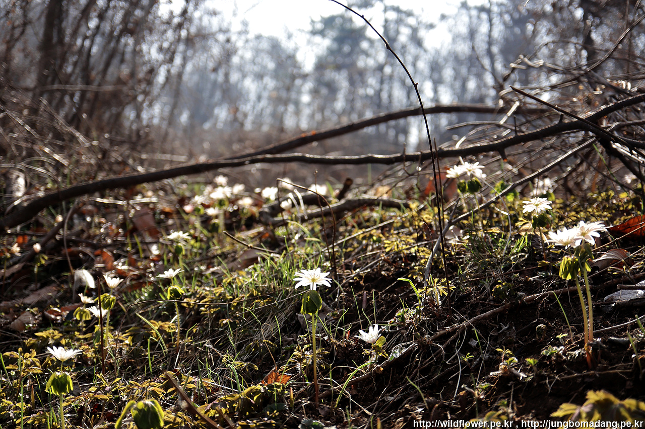 꿩의바람꽃 - 꿩의바람꽃도 풍도바람꽃 못지 않게 지천으로 피어 있습니다. 꿩의바람꽃은 풍도바람꽃에 비해 햇볕이 민감한 꽃으로 흐린날은 완전히 개화하지 않습니다. 풍도바람꽃은 그에 비해 흐린날도 개화합니다.