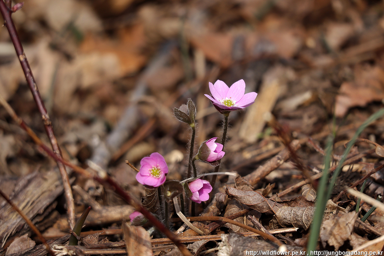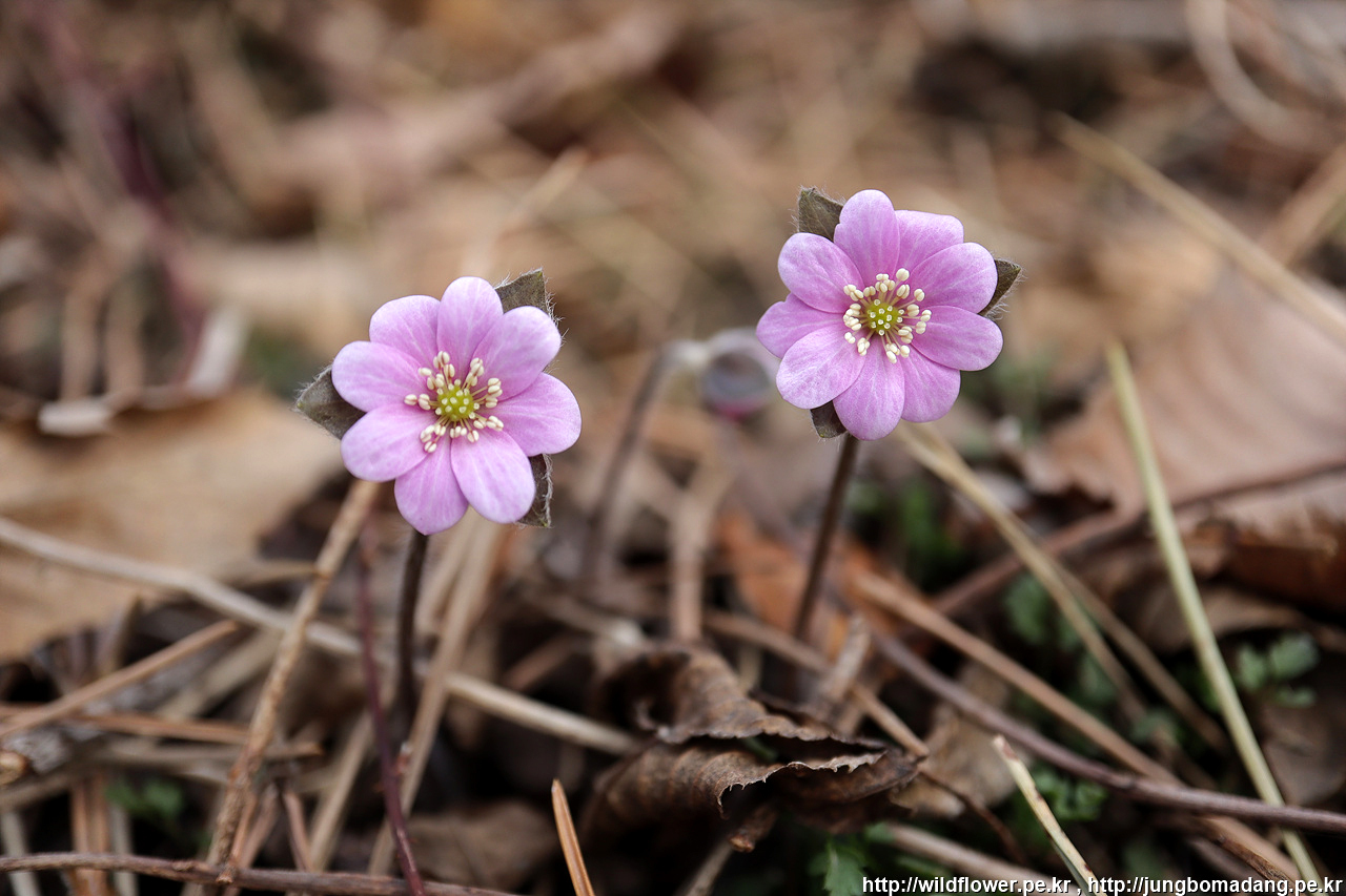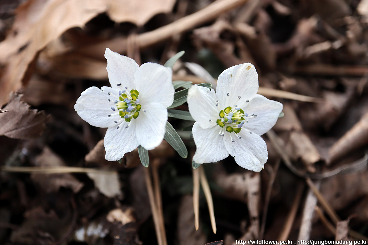 꿩의바람꽃 - 꿩의바람꽃도 풍도바람꽃 못지 않게 지천으로 피어 있습니다. 꿩의바람꽃은 풍도바람꽃에 비해 햇볕이 민감한 꽃으로 흐린날은 완전히 개화하지 않습니다. 풍도바람꽃은 그에 비해 흐린날도 개화합니다.