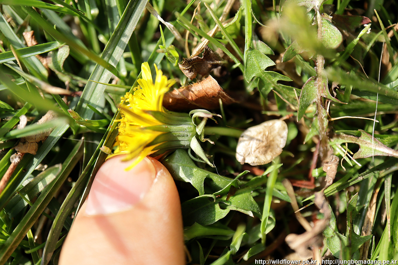 서양민들레는 보다 시피 꽃밭침이 아래쪽으로 젖혀 있습니다. 토종민들레는 위로 감싸는 형태.