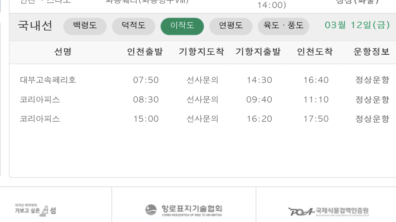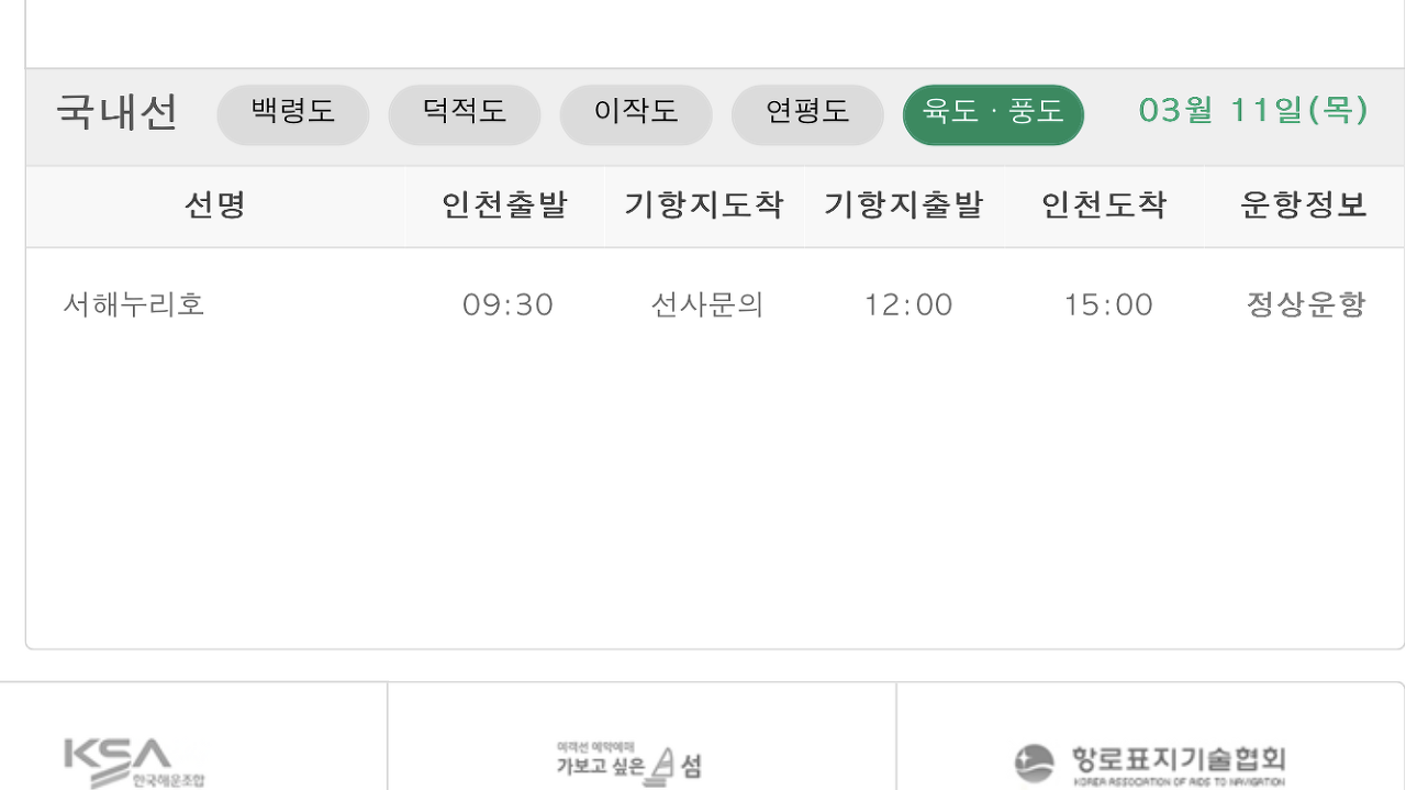 요래 풍도는 정상운항으로 확인됩니다. ^^