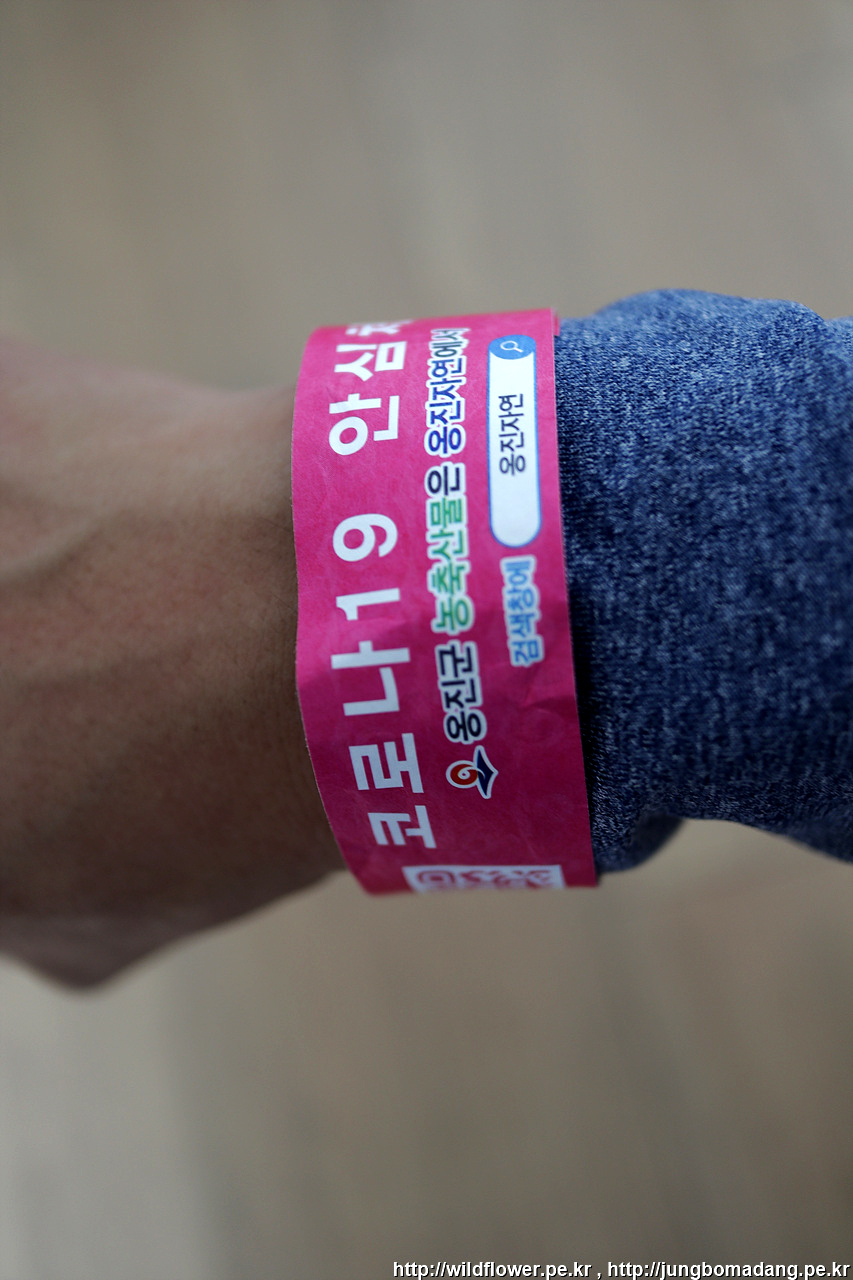 인천연안여객터미널 입장시 발열 체크를 하고 정상 체온이면 이런식으로 놀이공원에서 이용하는 손목 띠를 나누어 줍니다. 승선할때도 착용해야 한다고 하네요.