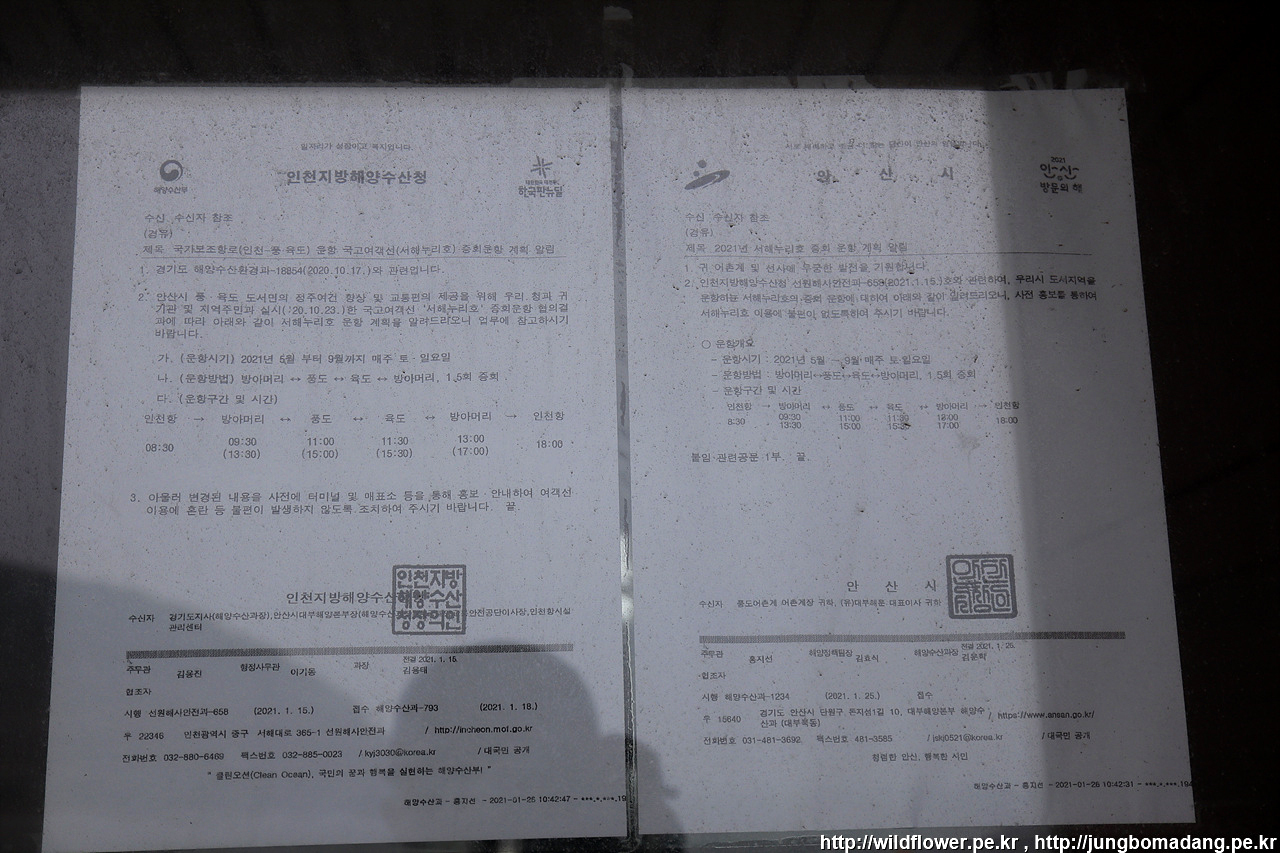 안내말씀 드리겠습니다. 풍도행 배편이 2021년 5월부터 9월까지는 주말에 1.5회 증편해서 운항한다고 합니다. 1이면 1이고 2면 2지 1.5는 또 머냐?