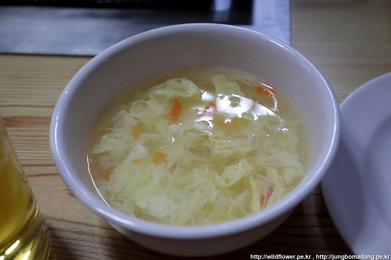 양꼬치 스프 등장. 쯔란도 같이 비벼서 찍어 먹습니다.