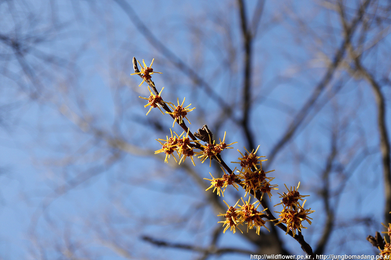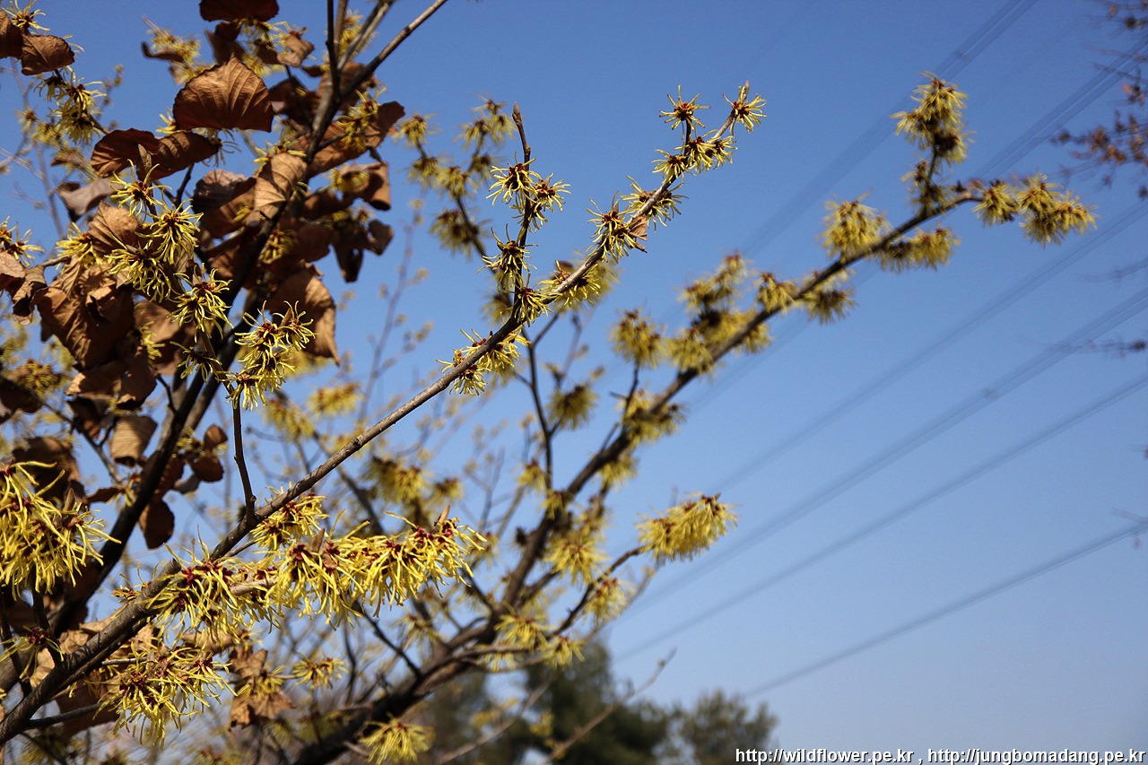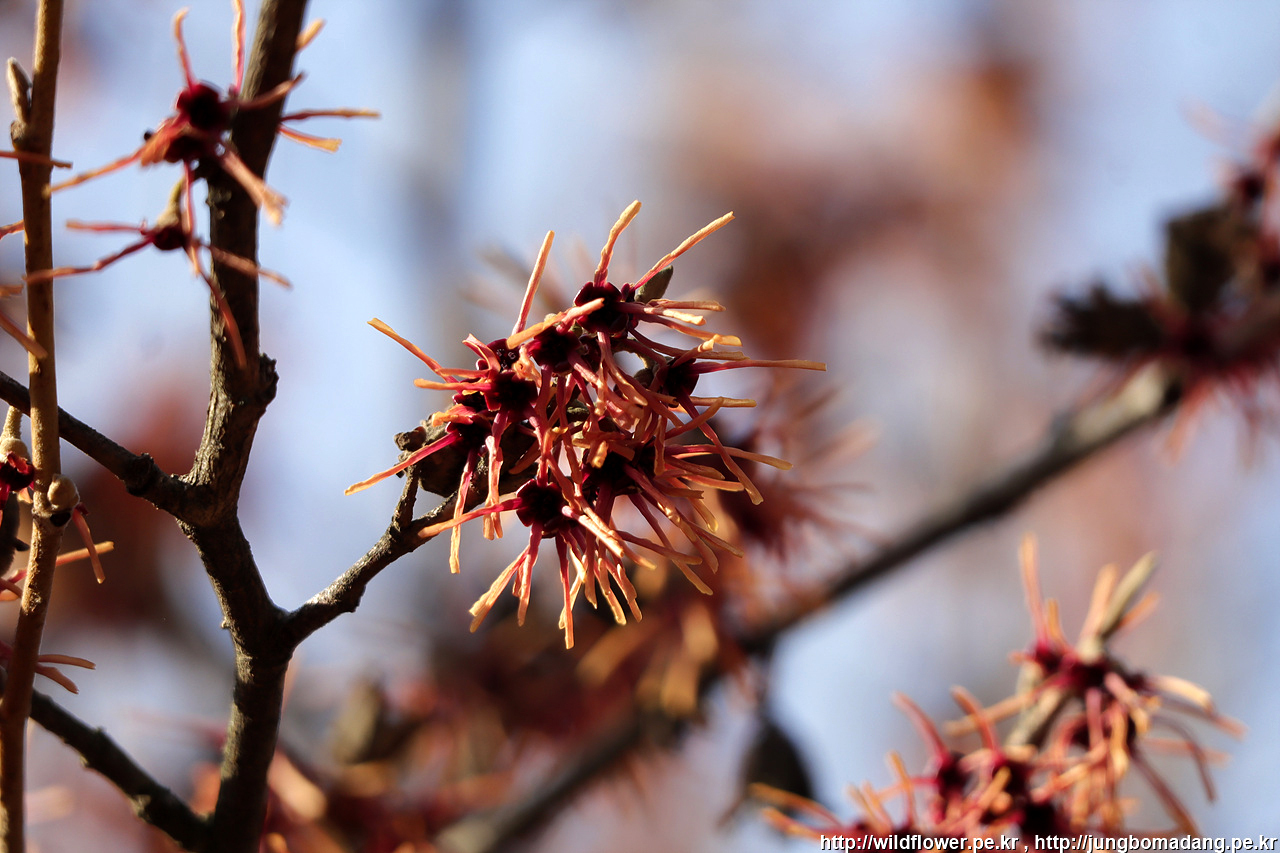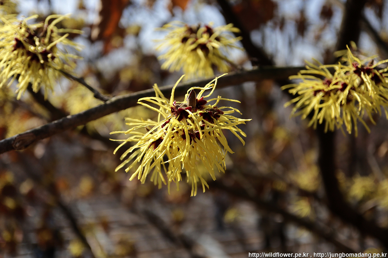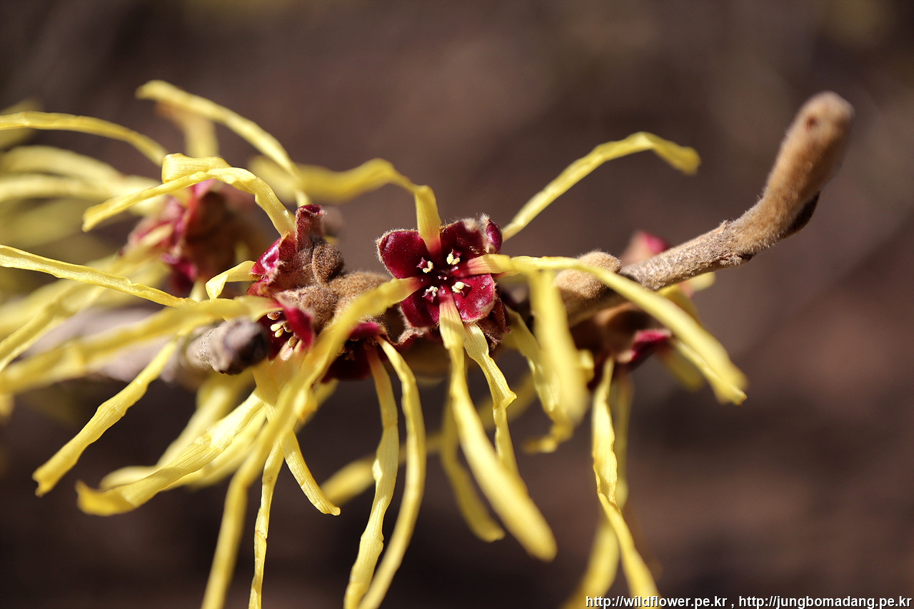 몰리스풍년화 - 풍년화보다 꽃잎이 두배정도 길고 원산지가 풍년화는 일본인데 비해, 몰리스풍년화 원산지는 중국입니다. 꽃말이 풍년화의 사랑, 정성에 추가로 저주, 악령도 추가됩니다. 꽃 향기는 풍년화와 같습니다.