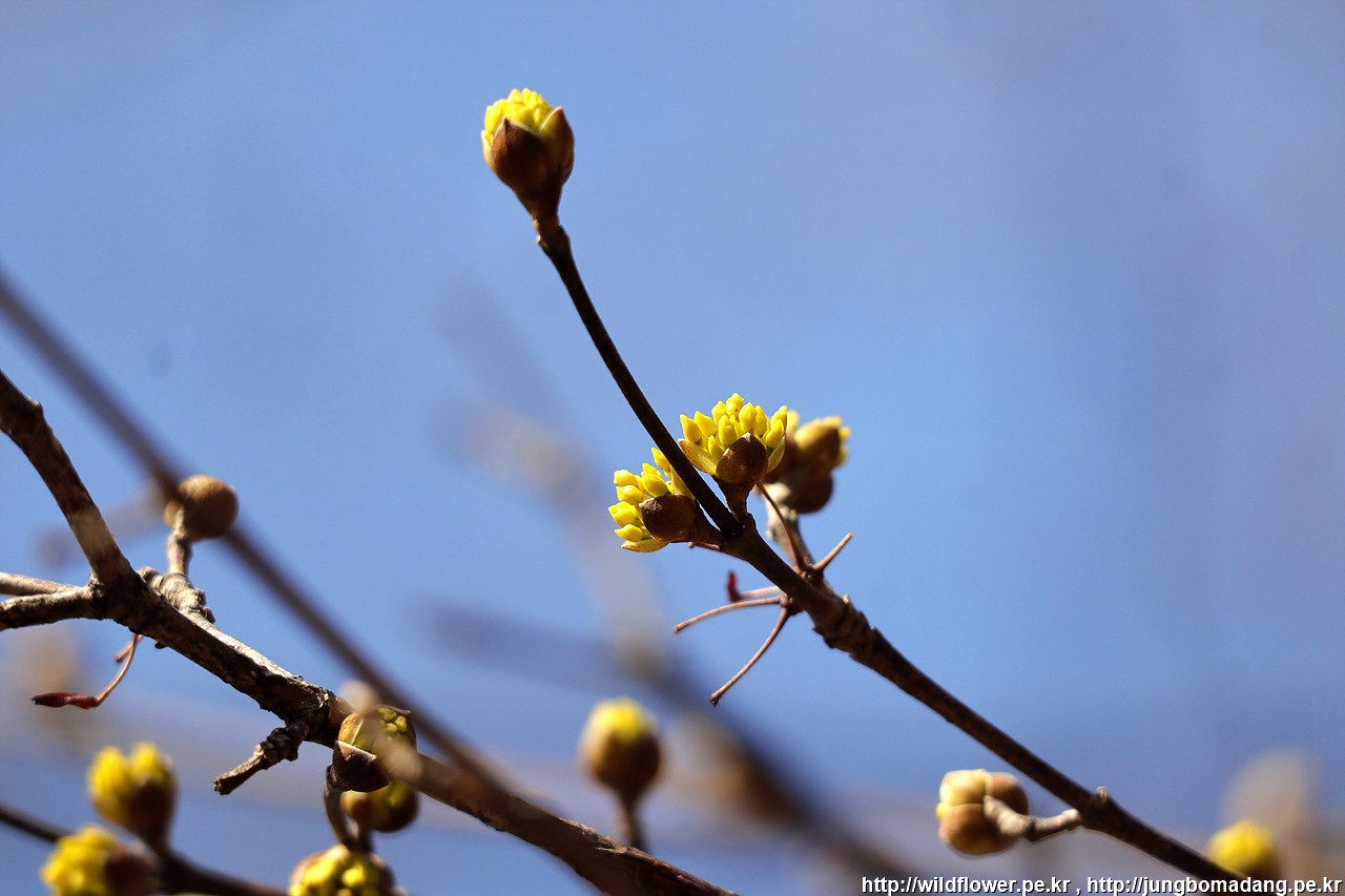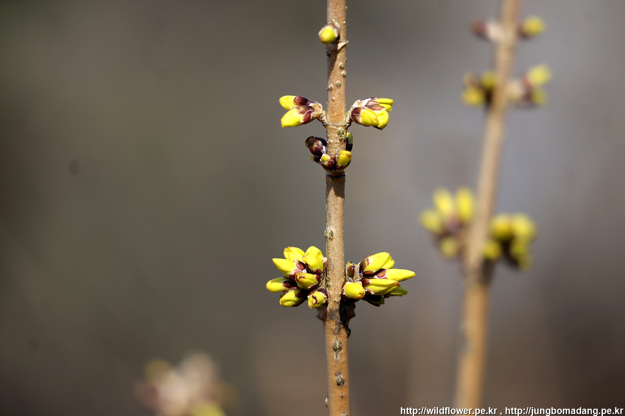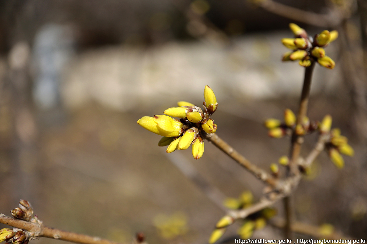 산수유 - 꽃말이 영원불명이라는 거창한 의미가 있습니다. 꽃이 피우려고 열심히 노력중이네요.