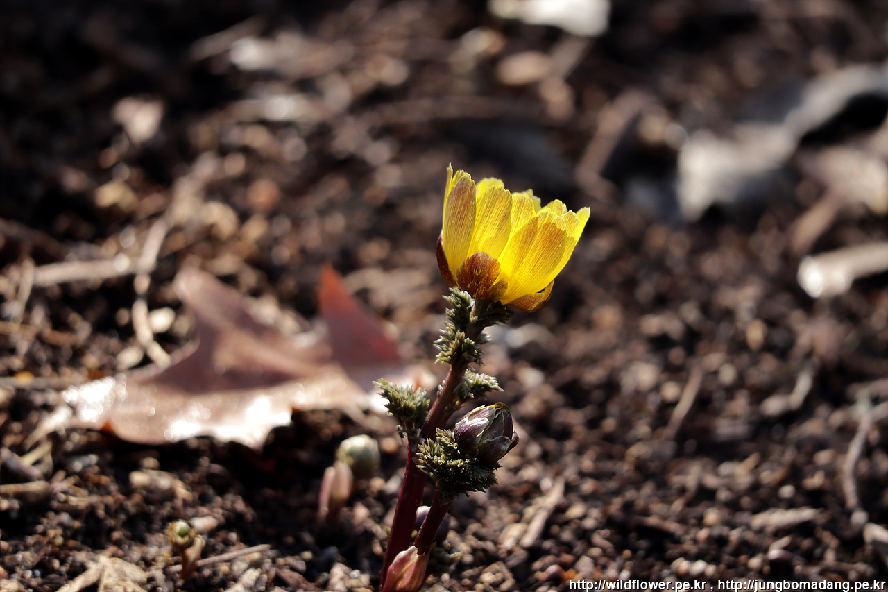 복수초 - 꽃이름이 복과 장수를 의미하는 데, 꽃말은 영원한 행복, 슬픈 추억이라는 뜻을 가지고 있습니다.