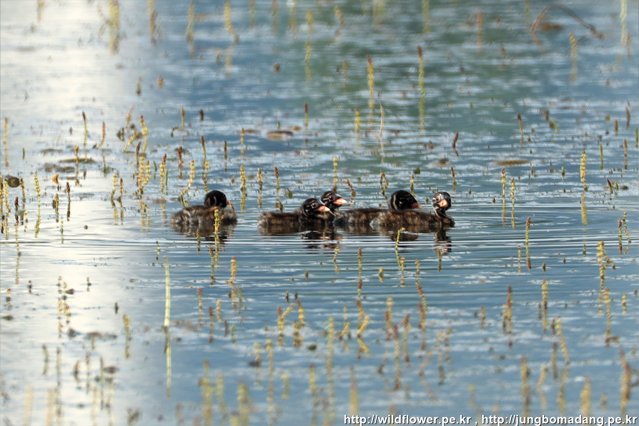 어린새들은 참 귀여운 데 특히 논병아리 어린새들은 유독 귀엽네요. 멀리(약 100미터) 있어서 담기 쉽지 않았습니다.