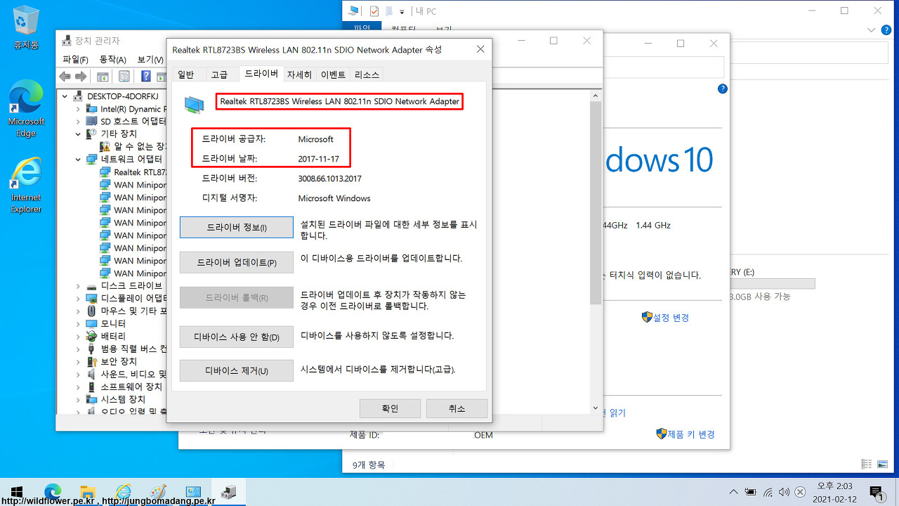 6. 현재 무선랜카드의 메이커(Realtek)에서 제공하는 드라이버 날짜는 2017-06-06 입니다. 위의 5. 번보다 날짜는 최신이 아니지만, 메이커측 드라이버의 최신 드라이버를 적용해 보도록 하겠습니다. 만일 Realtek RTL8723BS Wireless LAN 802.11n SDIO Network Adapter 가 맞다면