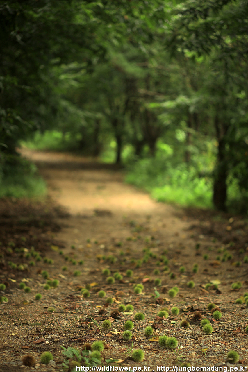 작은 산을 넘는 데 밤송이들이 많이 떨구어져 있습니다. 아마도 깍지벌레들의 소행이 아닐까 생각됩니다.