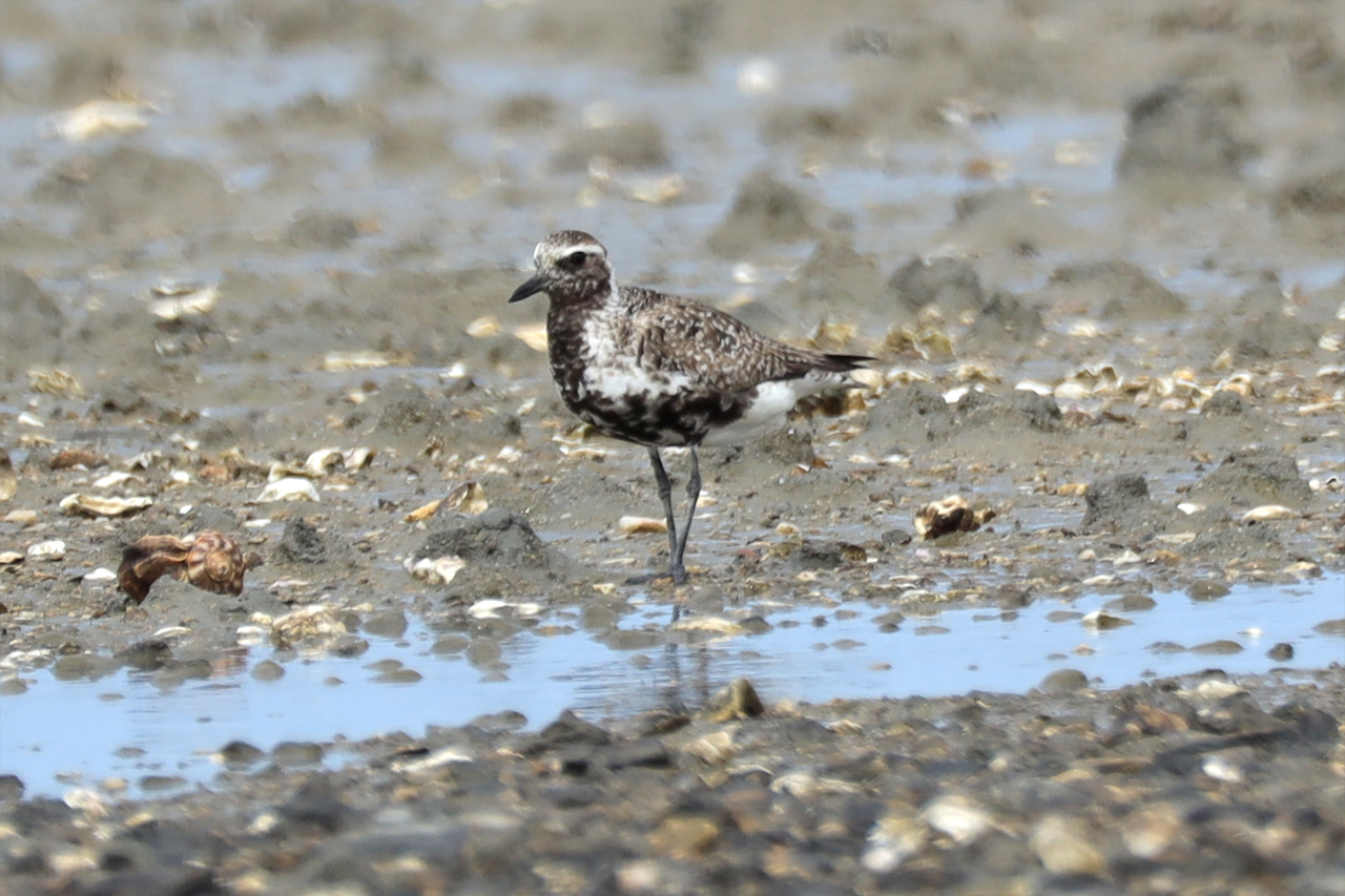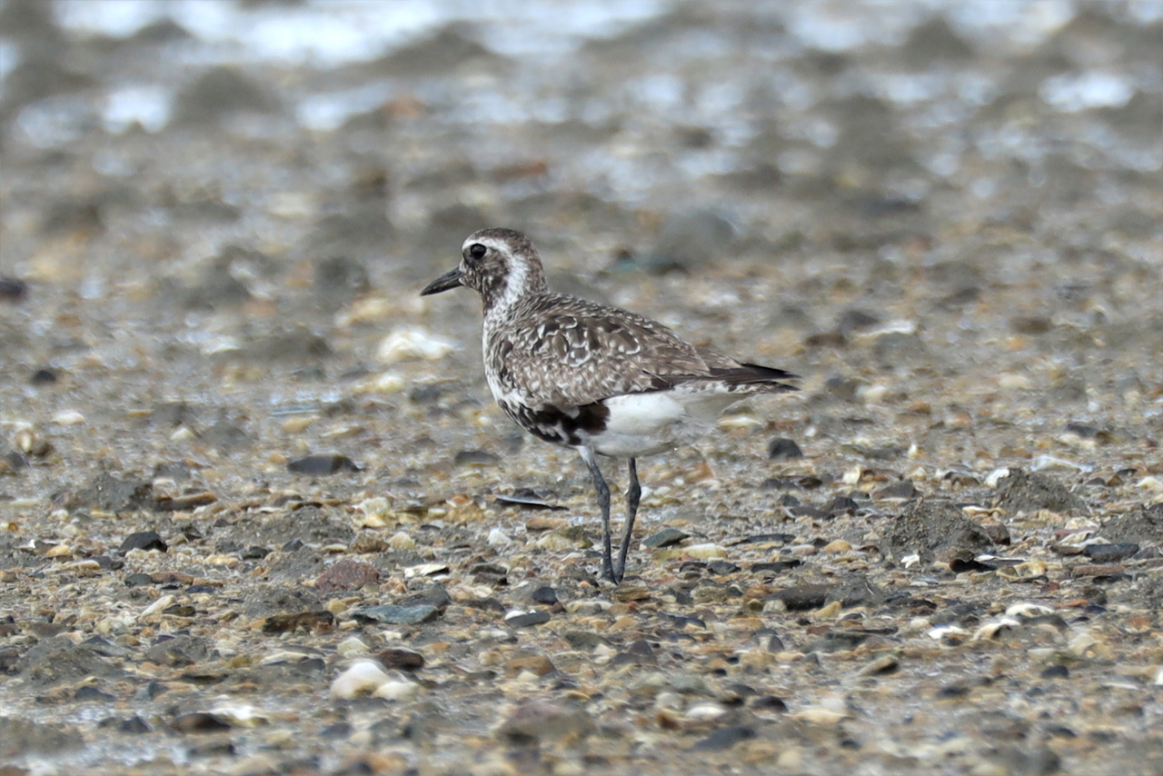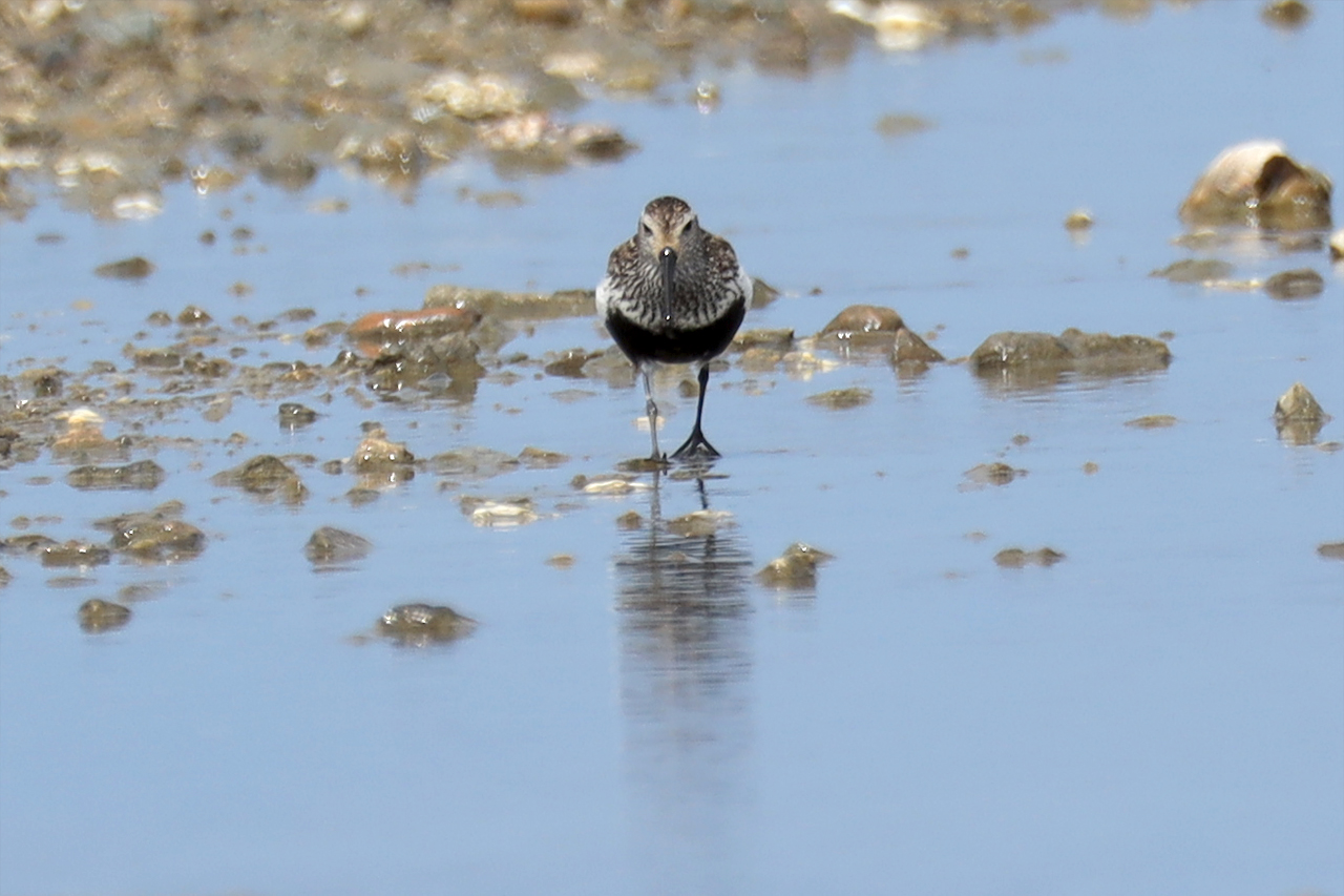 민물도요 - 여름깃. 크롭 사진입니다. 개꿩과 유사하지만, 머리와 목까지 검은 개꿩에 비해 민물도요의 여름깃은 배쪽만 검은 반점이 있습니다.