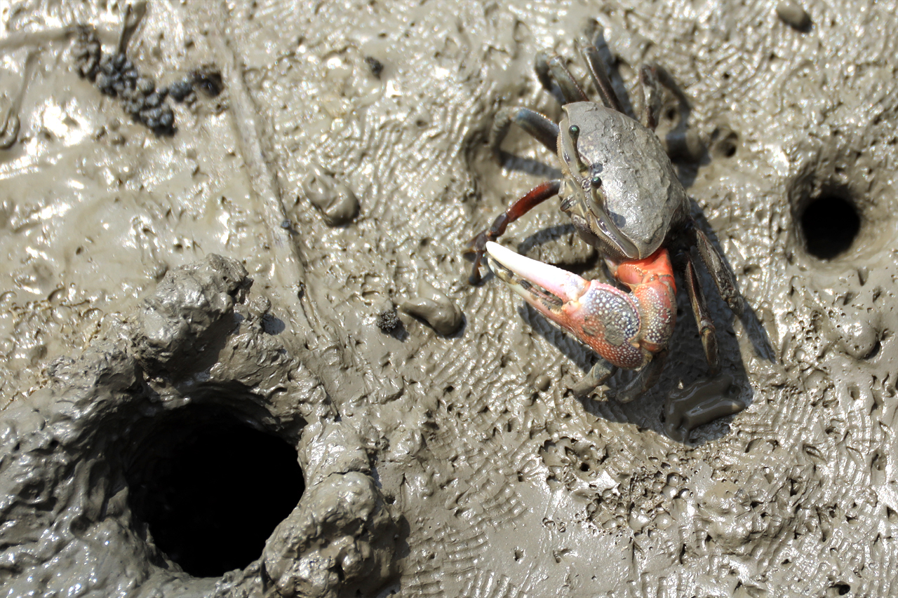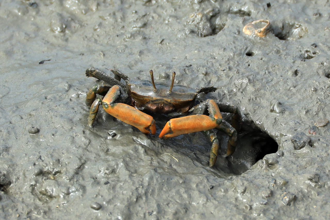 중부리도요 - 크롭 사진입니다. 열심히 게를 잡고 있습니다.