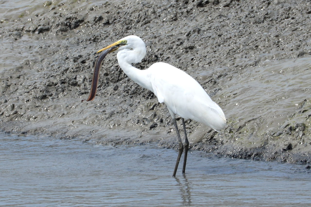 중대백로 - 크롭 사진입니다. 붕장어를 하나 잡아서 그대로 넘기네요.