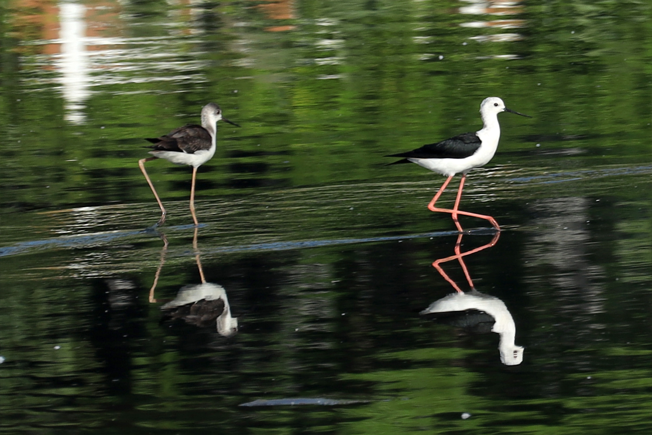 장다리물떼새 - 암컷, 수컷. 크롭 사진입니다.
