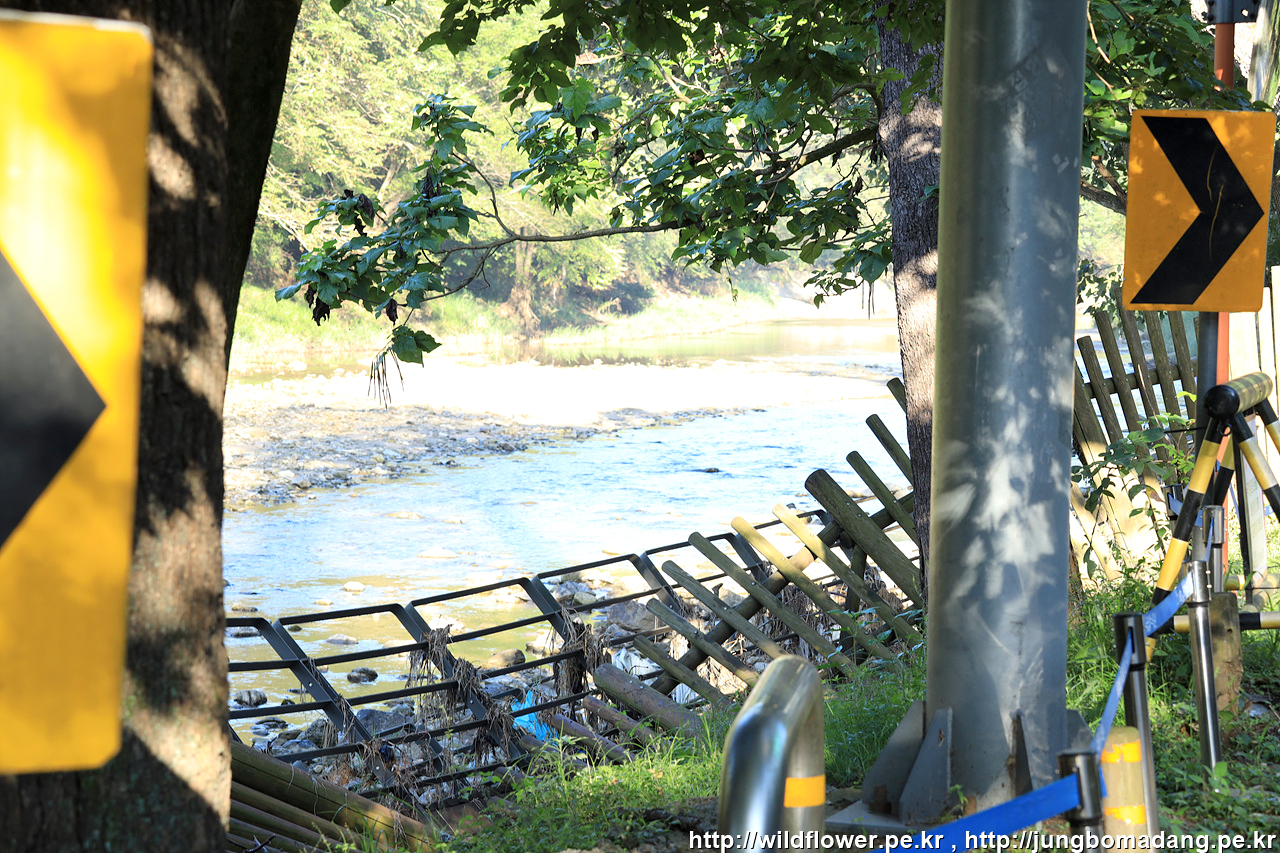 아하! 산책로의 계곡쪽이 유실되었네요. 나중에 수목원 직원에게 문의하니 올해 7월에 폭우가 내려서 무너졌고 복구 중이라고 합니다.