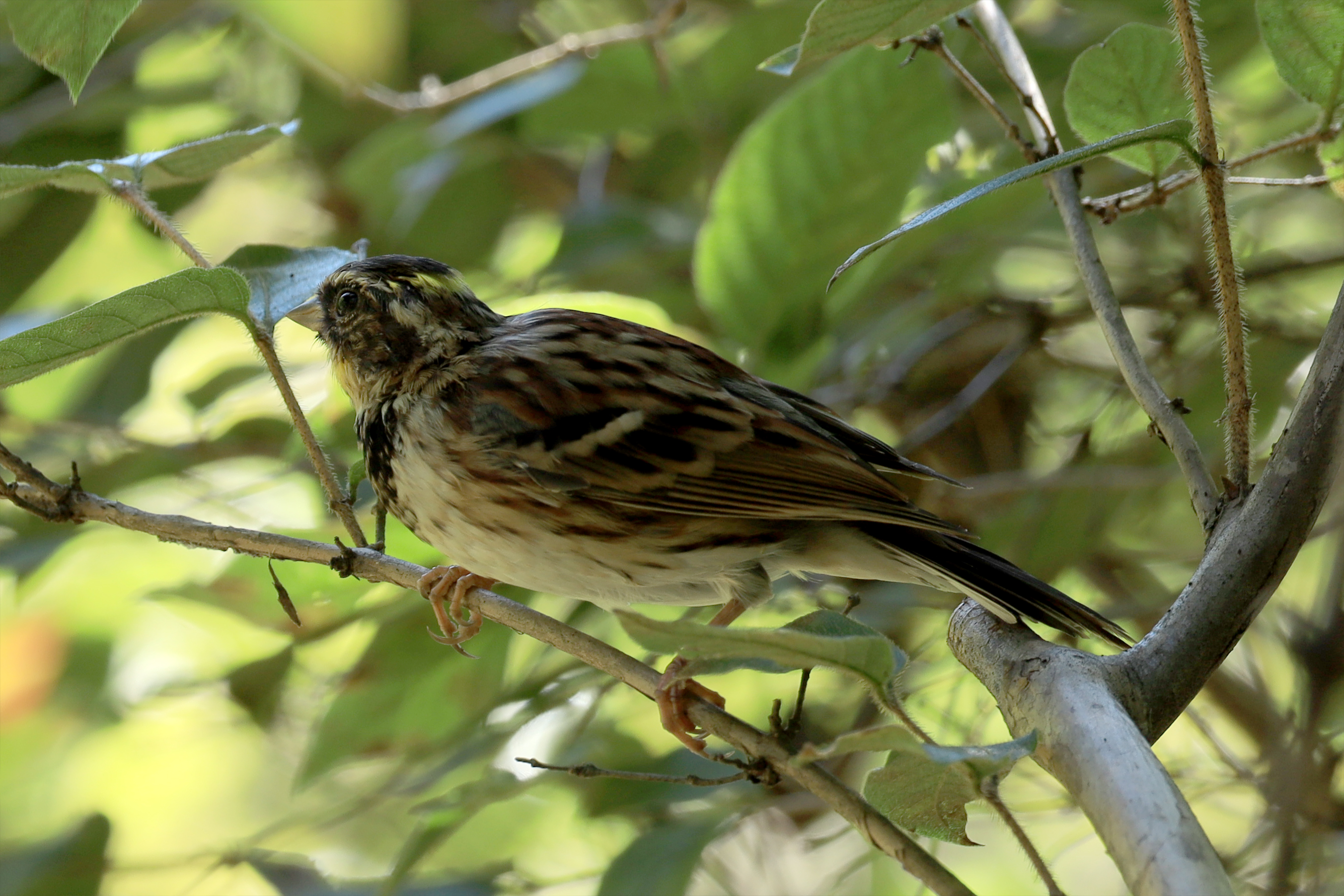 노랑턱멧새 - 암컷. 크롭 사진입니다.
