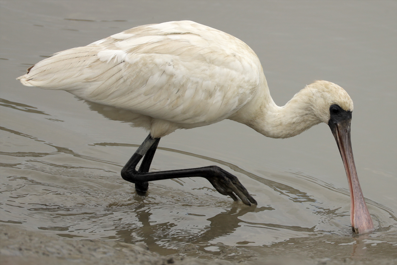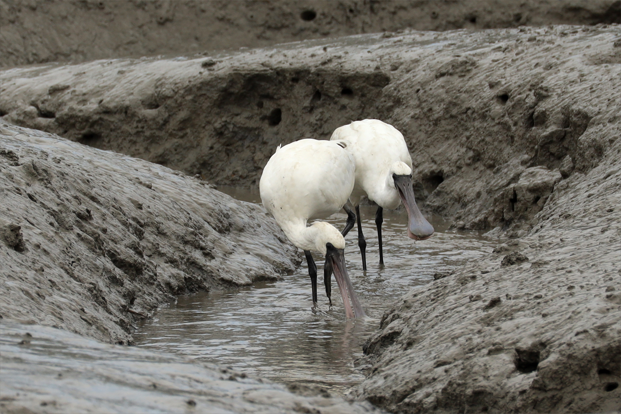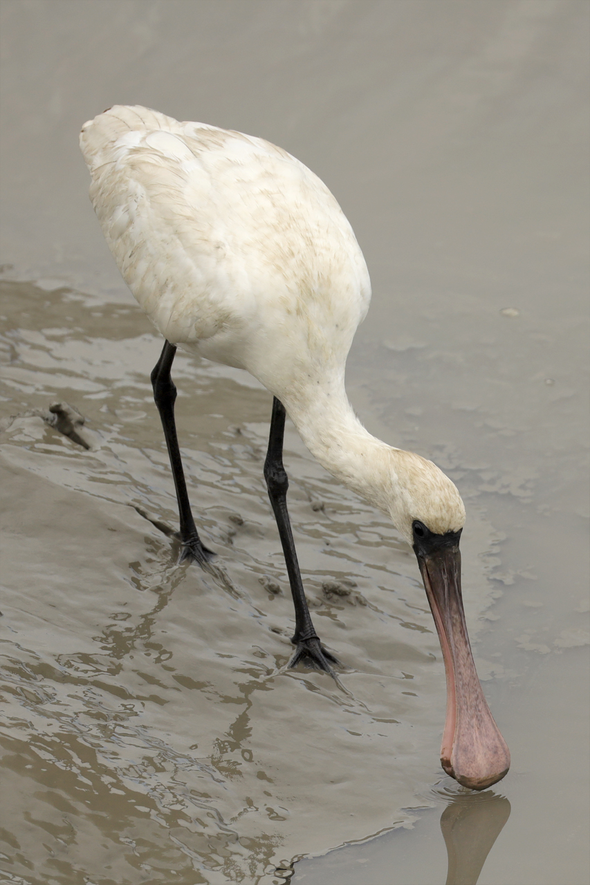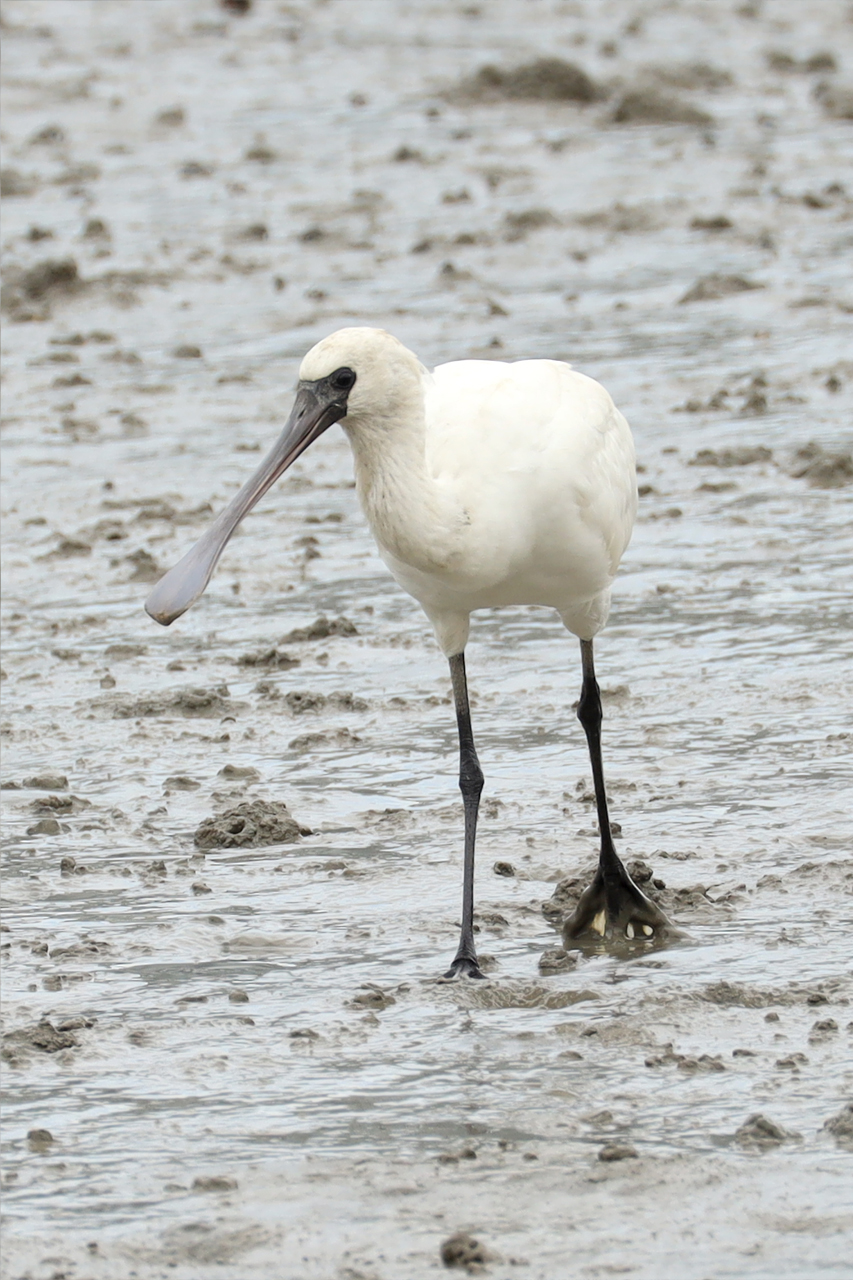 저어새 - 크롭 사진입니다. 갯골을 따라 수색 중입니다.