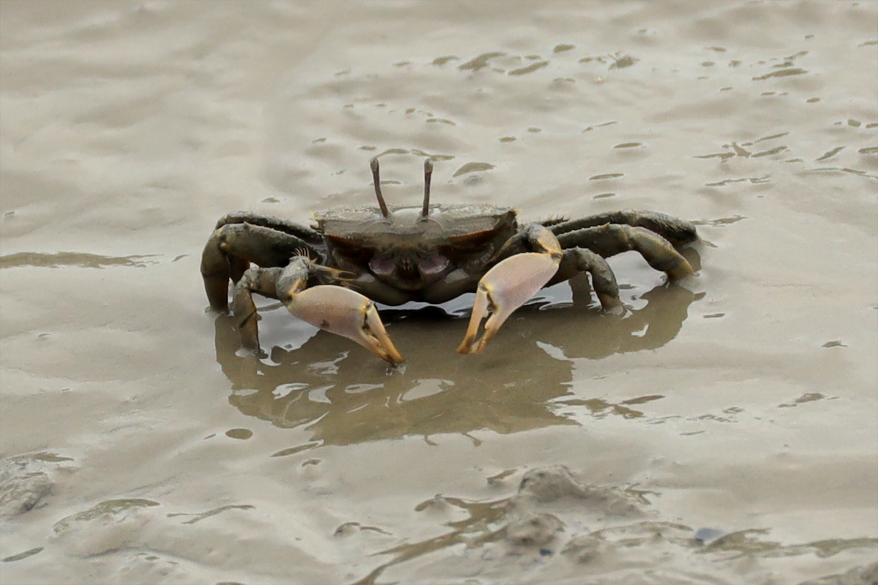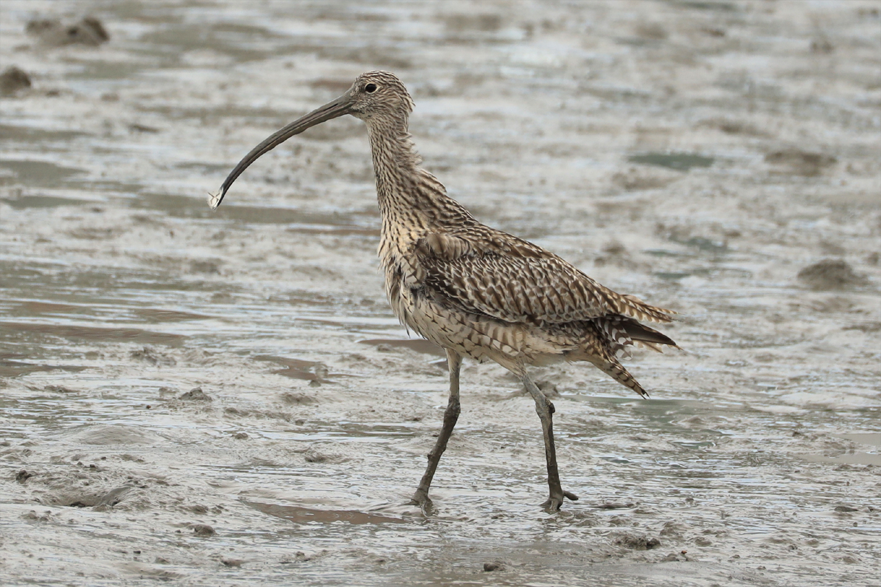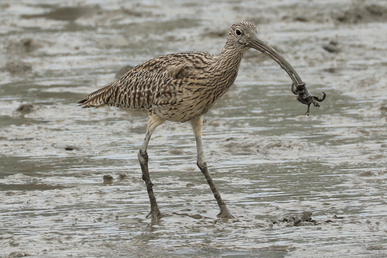 알락꼬리마도요 - 크롭 사진입니다. 칠게 사냥에 성공했네요.