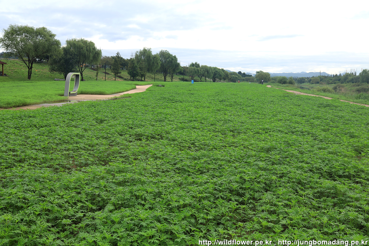 강매석교공원의 코스모스는 열심히 자라는 중이고 꽃은 아직 안 피었습니다.