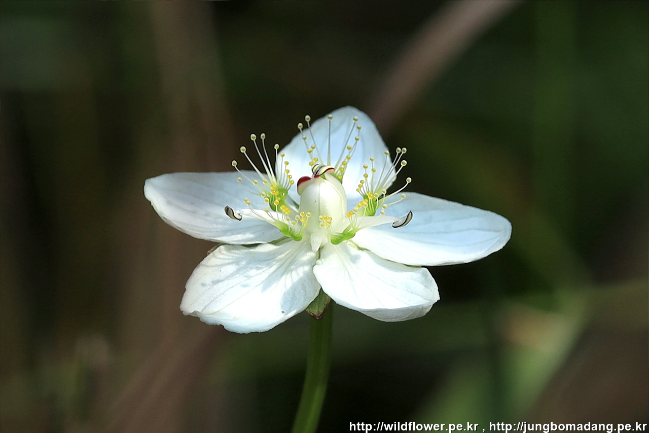 연지 물매화 (립스틱 물매화) - 원래 이름은 물매화이며 암술 부분이 빨간 모습이 립스틱 바른 것 같아 연지 물매화라고 부릅니다.