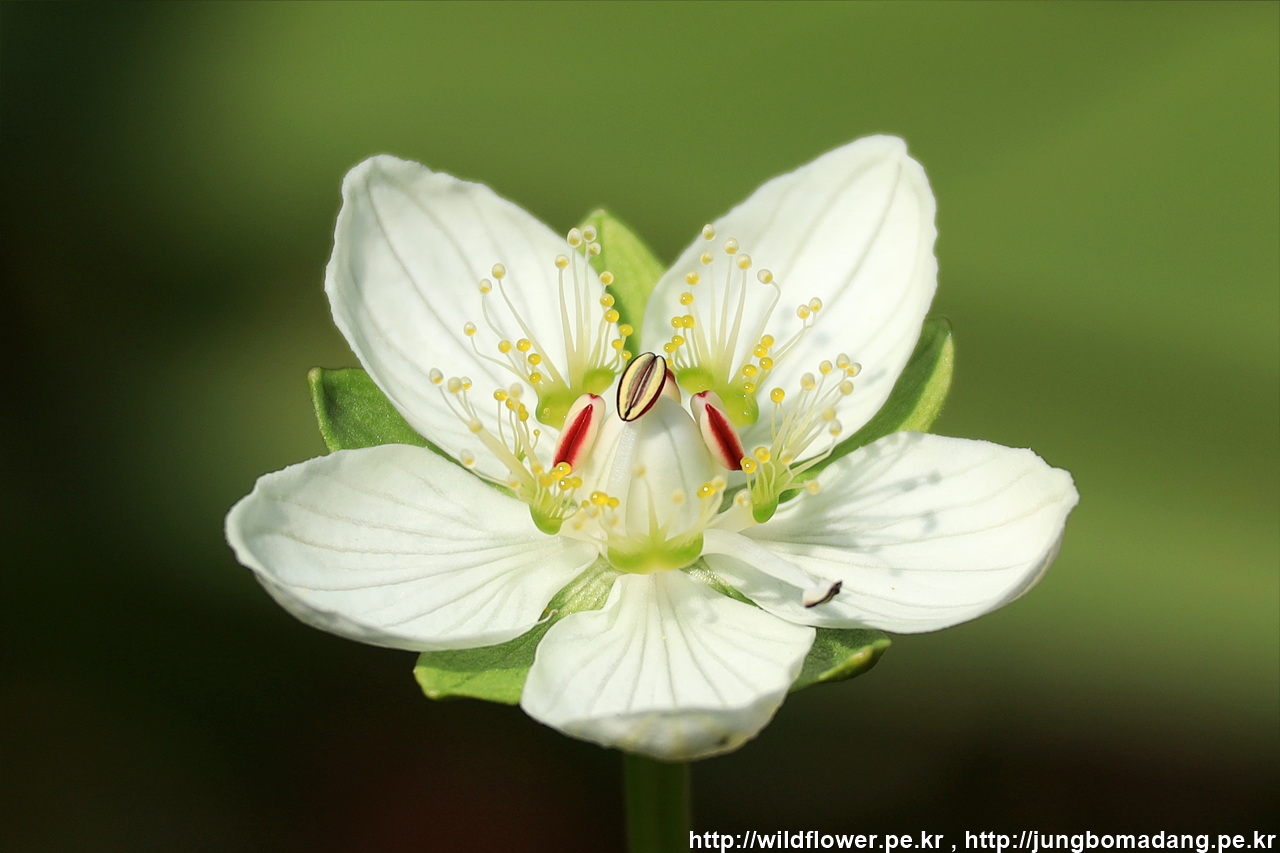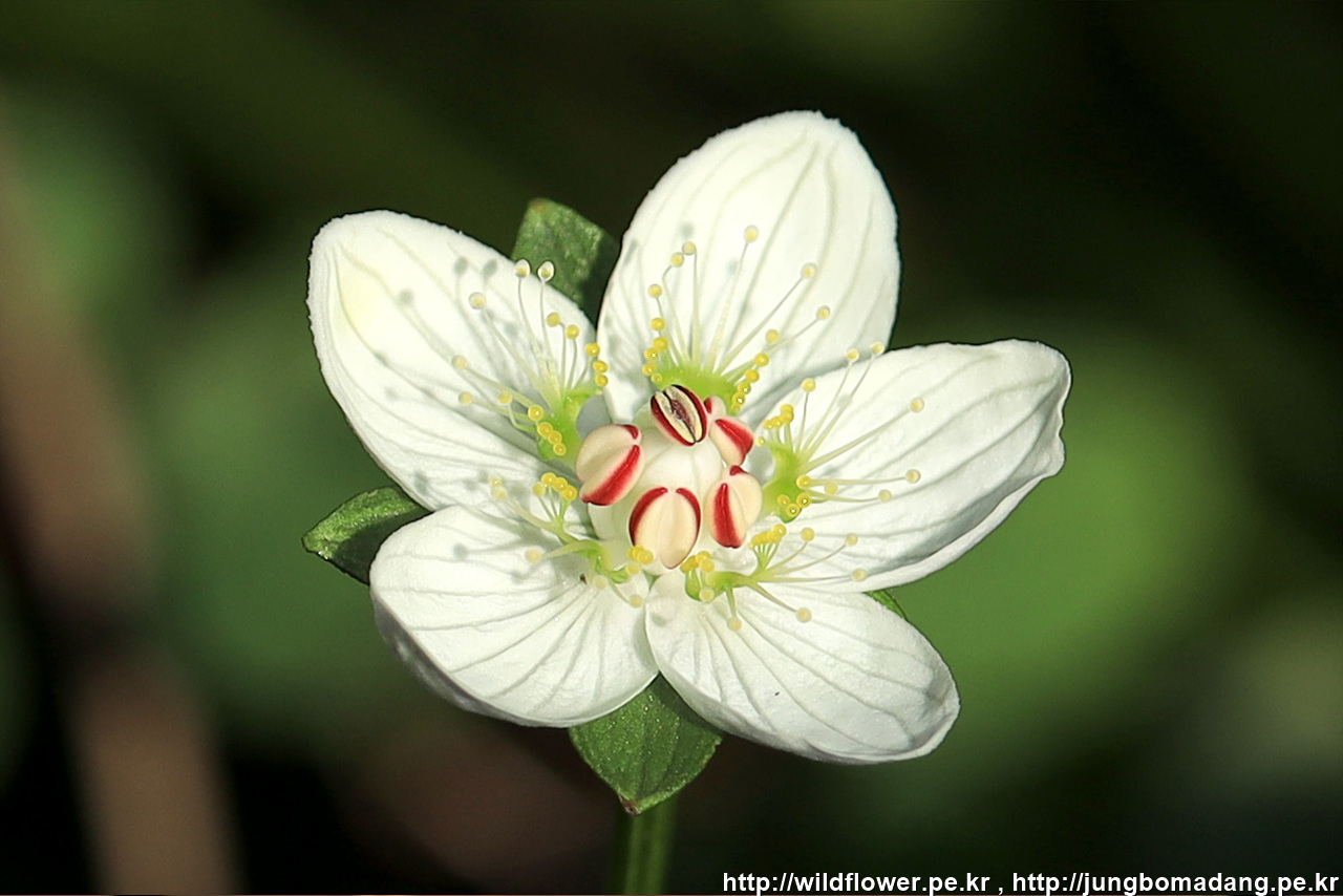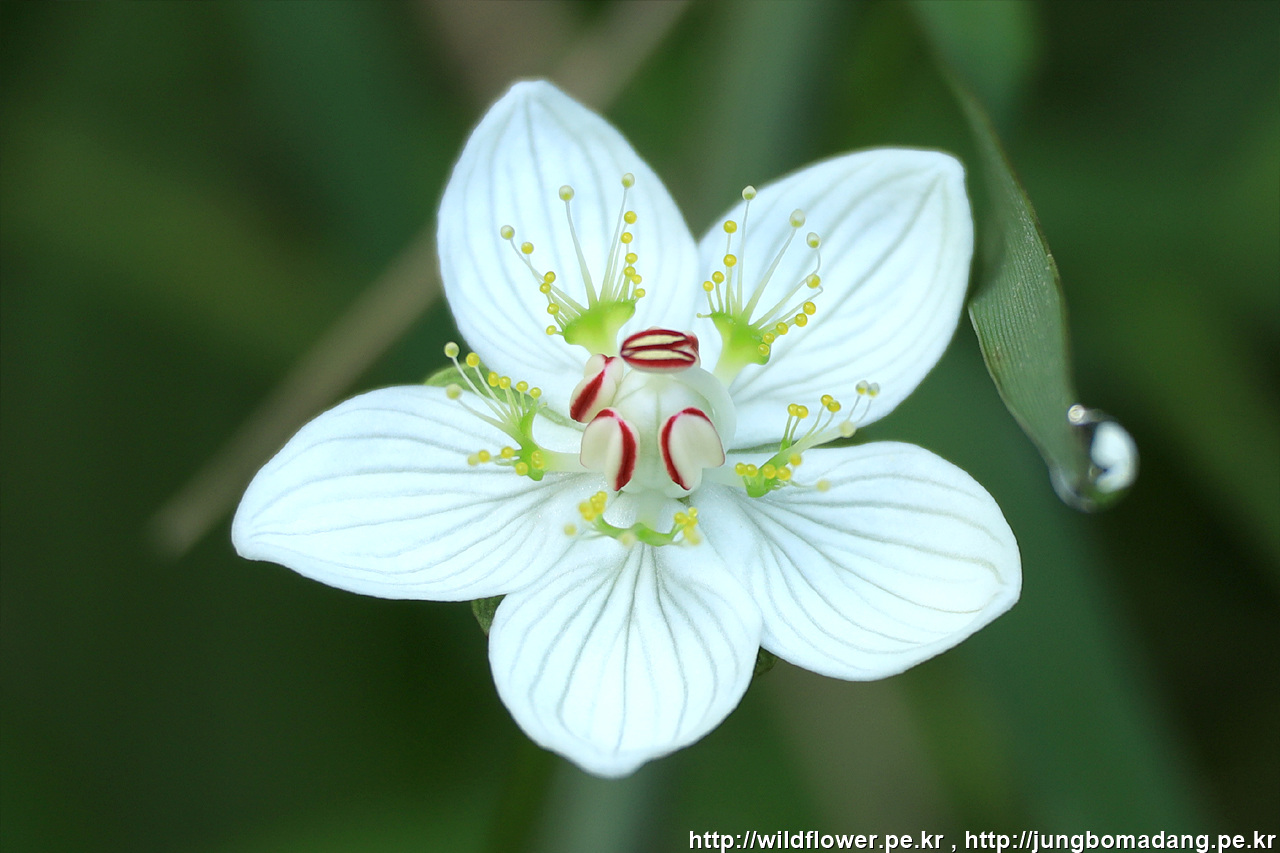 연지 물매화 (립스틱 물매화) - 원래 이름은 물매화이며 암술 부분이 빨간 모습이 립스틱 바른 것 같아 연지 물매화라고 부릅니다.