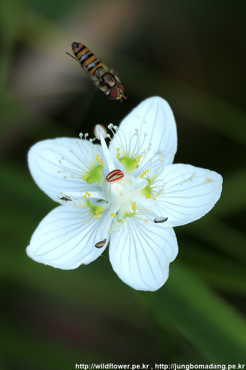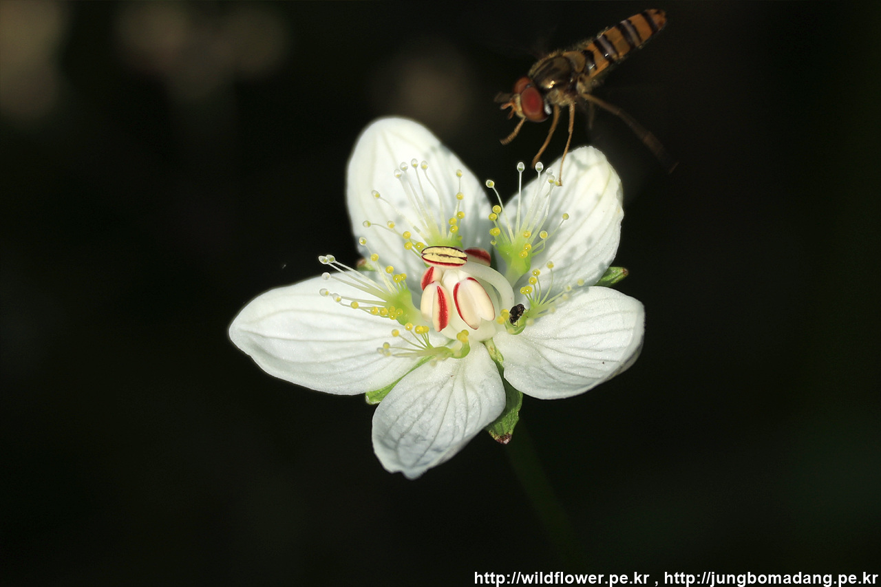 연지 물매화 (립스틱 물매화) - 호리꽃등에가 노리고 있습니다.