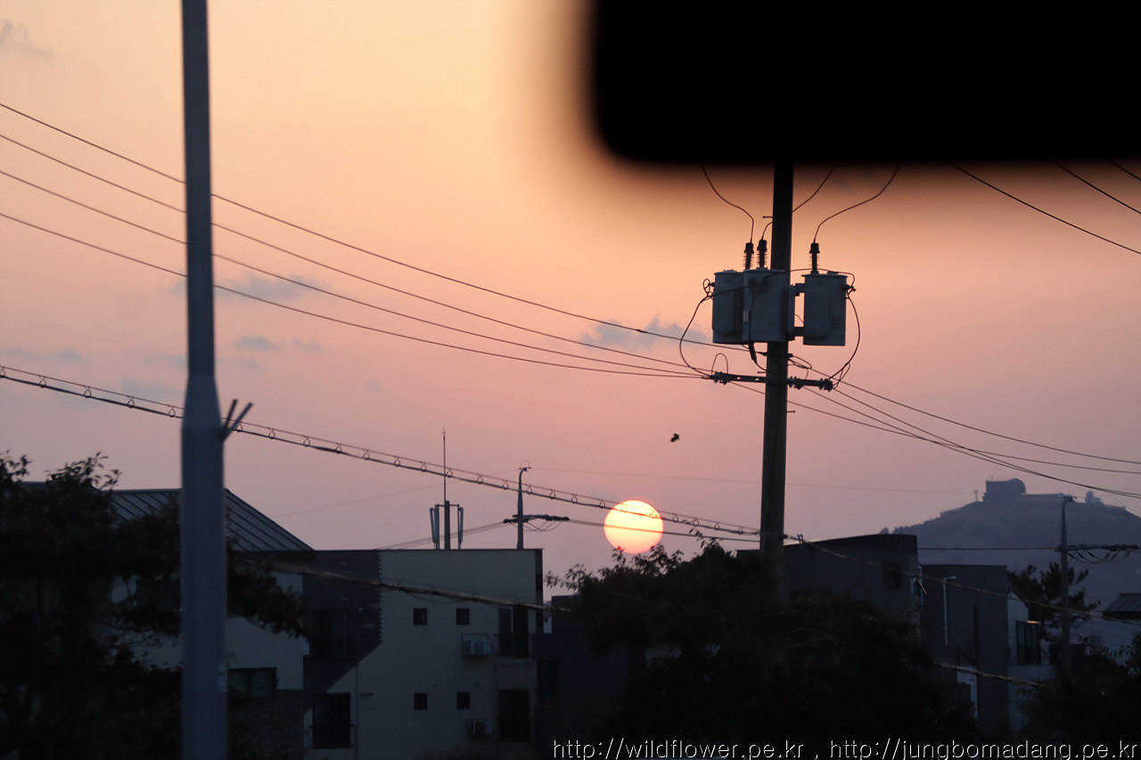 사계쪽으로 향하는 데, 햇님이 퇴근 중입니다.