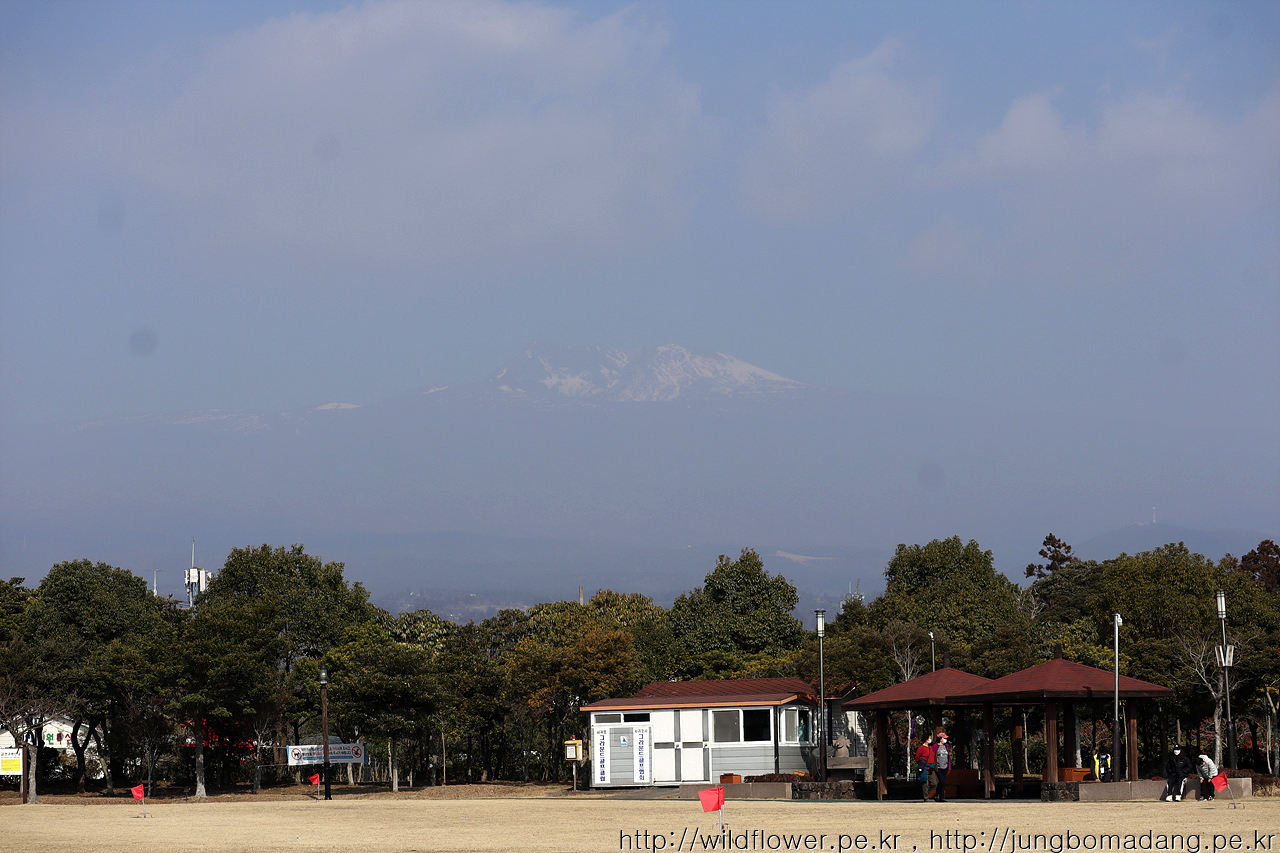 뒤로는 한라산 남벽이 빼꼼