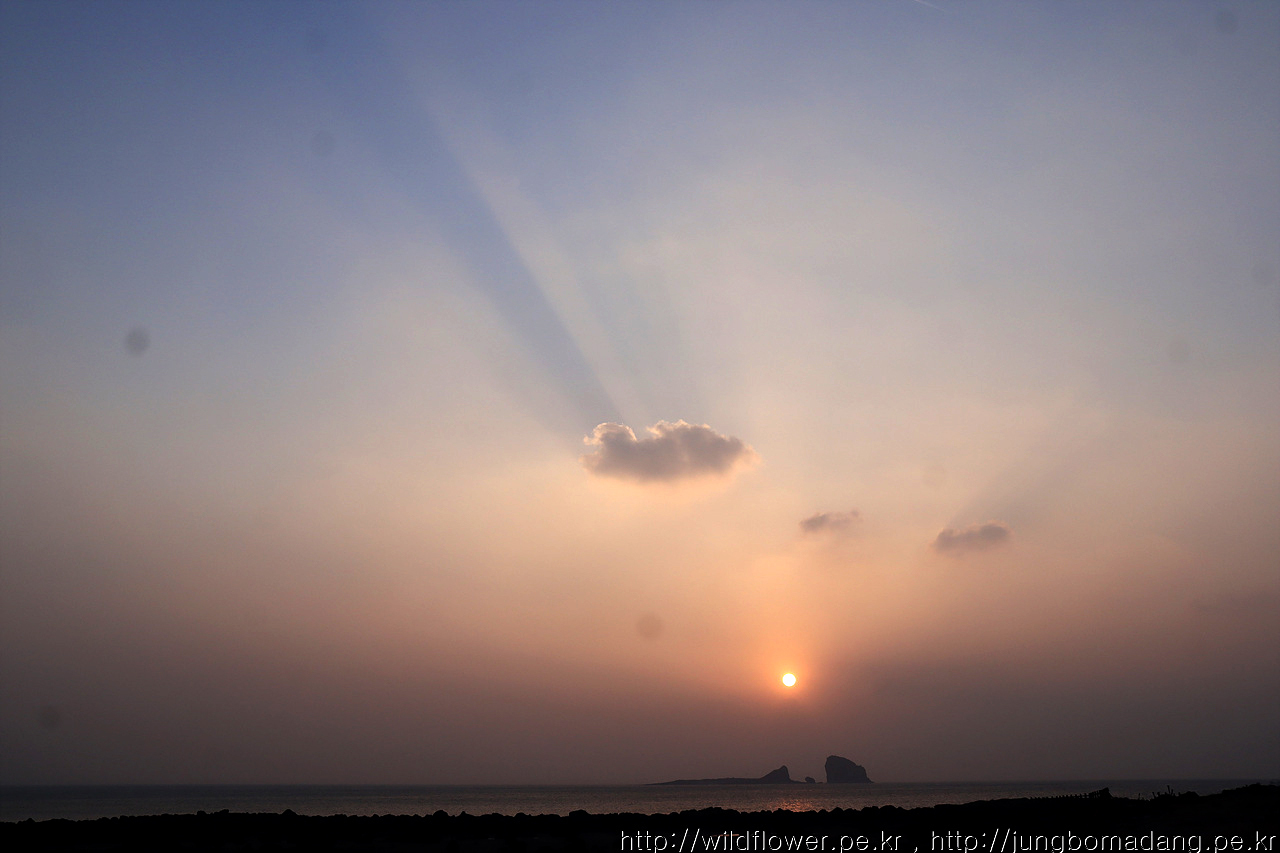 일출을 보기 위해 일출 시간을 맞춰서 이동 중인 데, 형제섬에서 떠오르는 햇님을 기대했는 데, 안개가 잔뜩 껴서 시간이 흐른 뒤에 슬슬 올라옵니다.