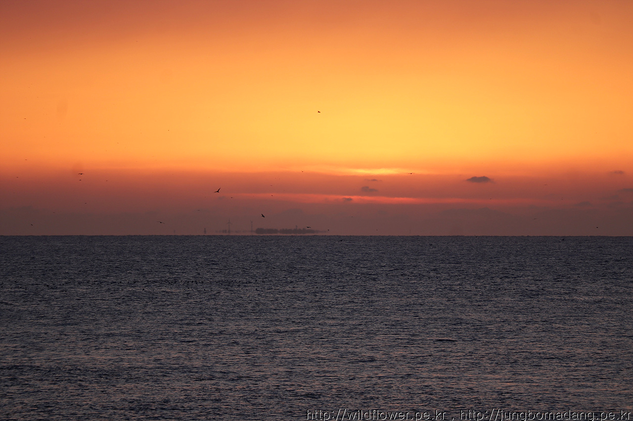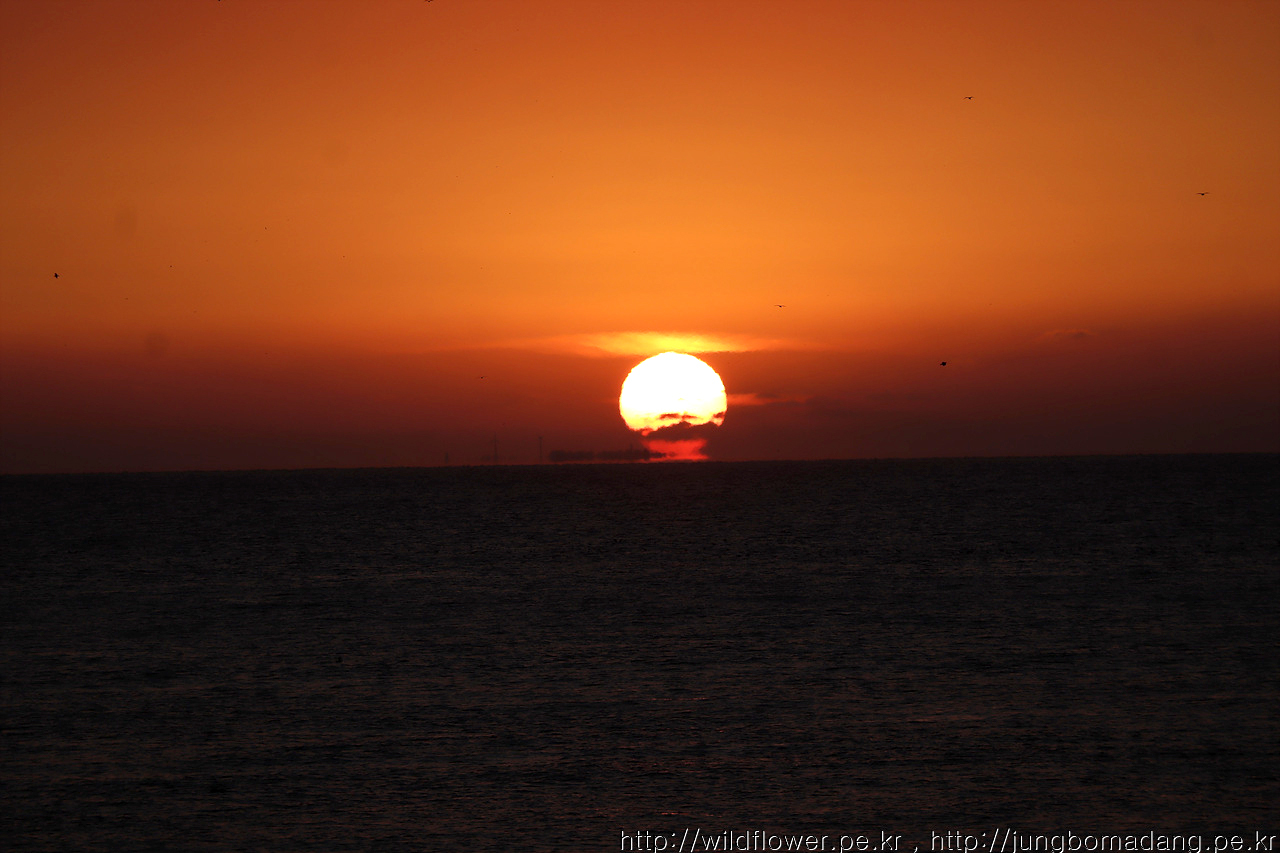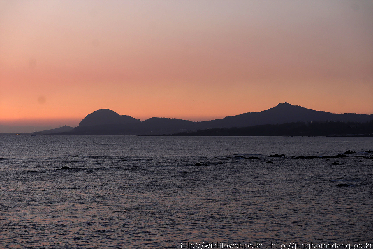 바닷가에 도착할 땐 중간에 햇님이 지고 말았네요. ㅜ