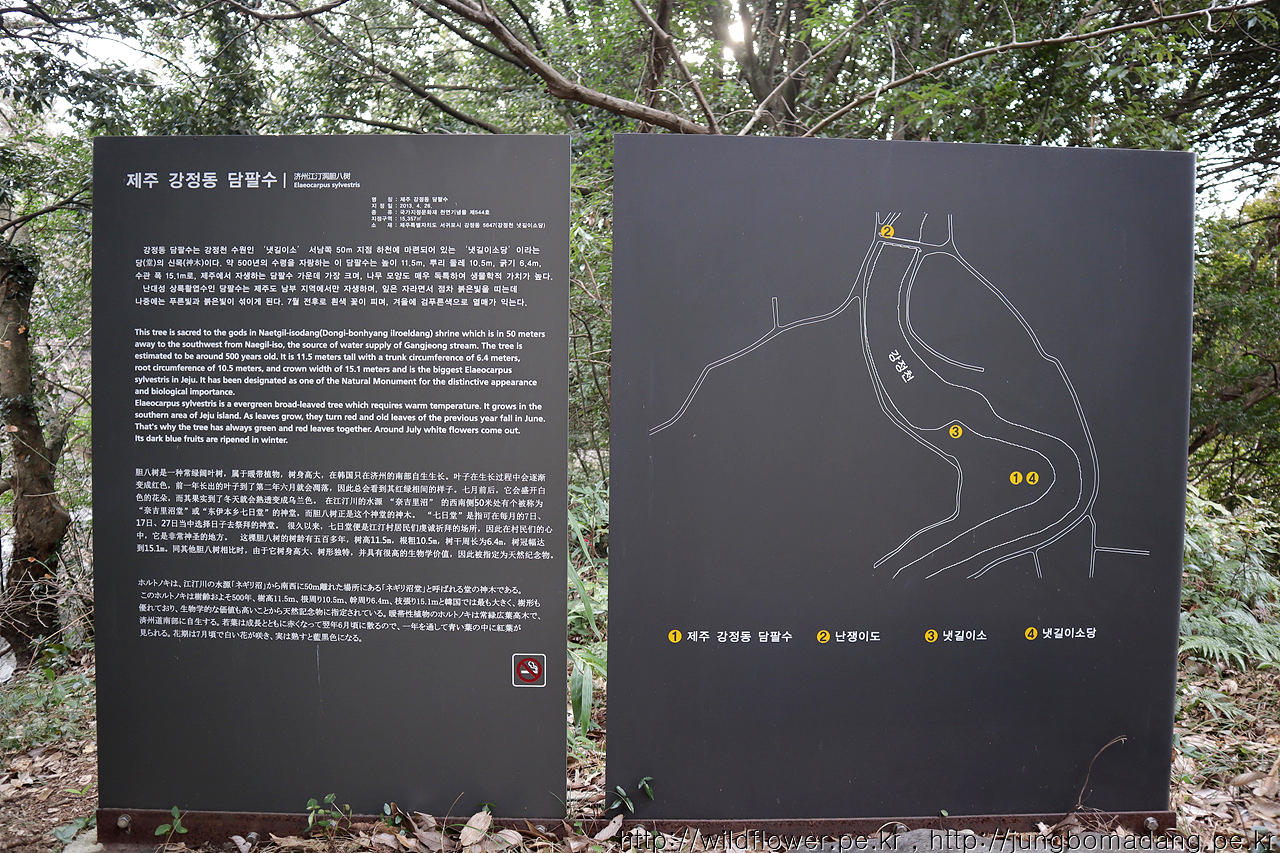 제주 강정도 담팔수 안내판