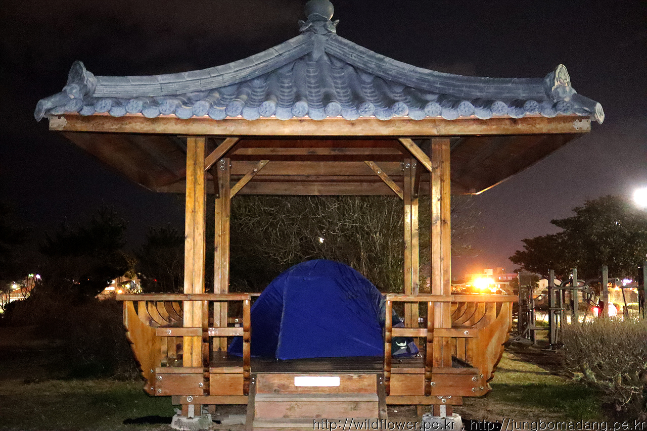 정자에서 하룻밤을 보냅니다.