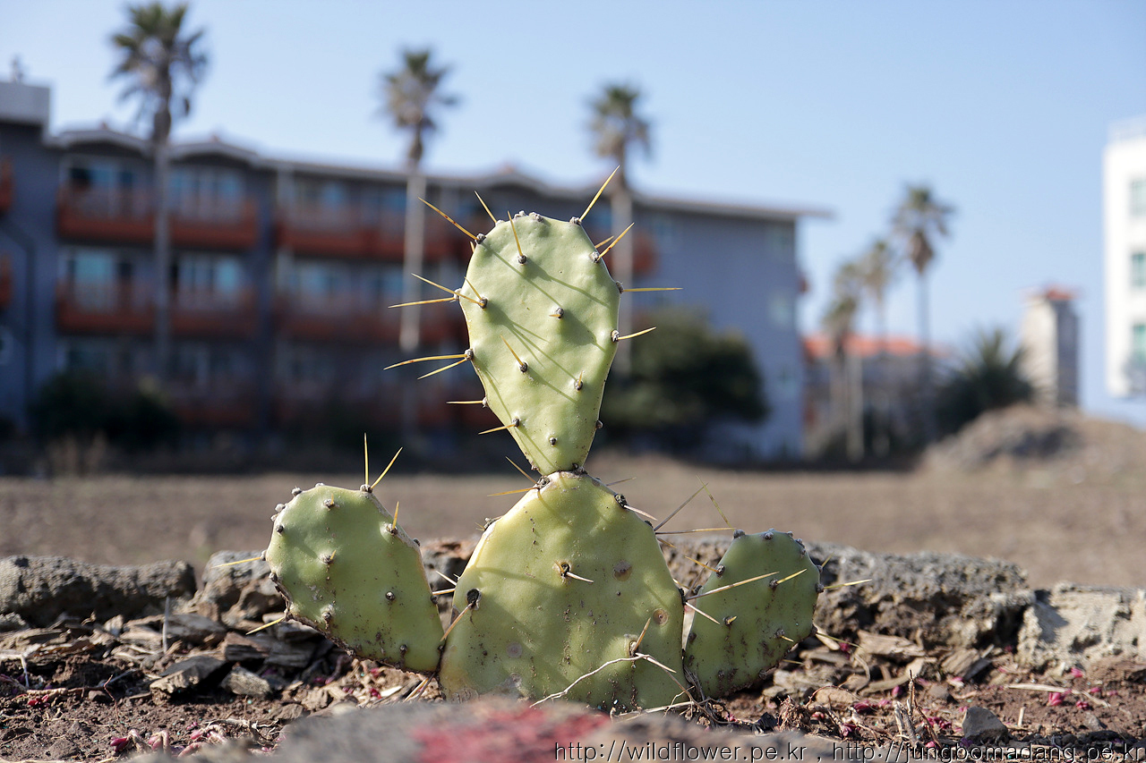 담장에 심어진 손바닥 선인간