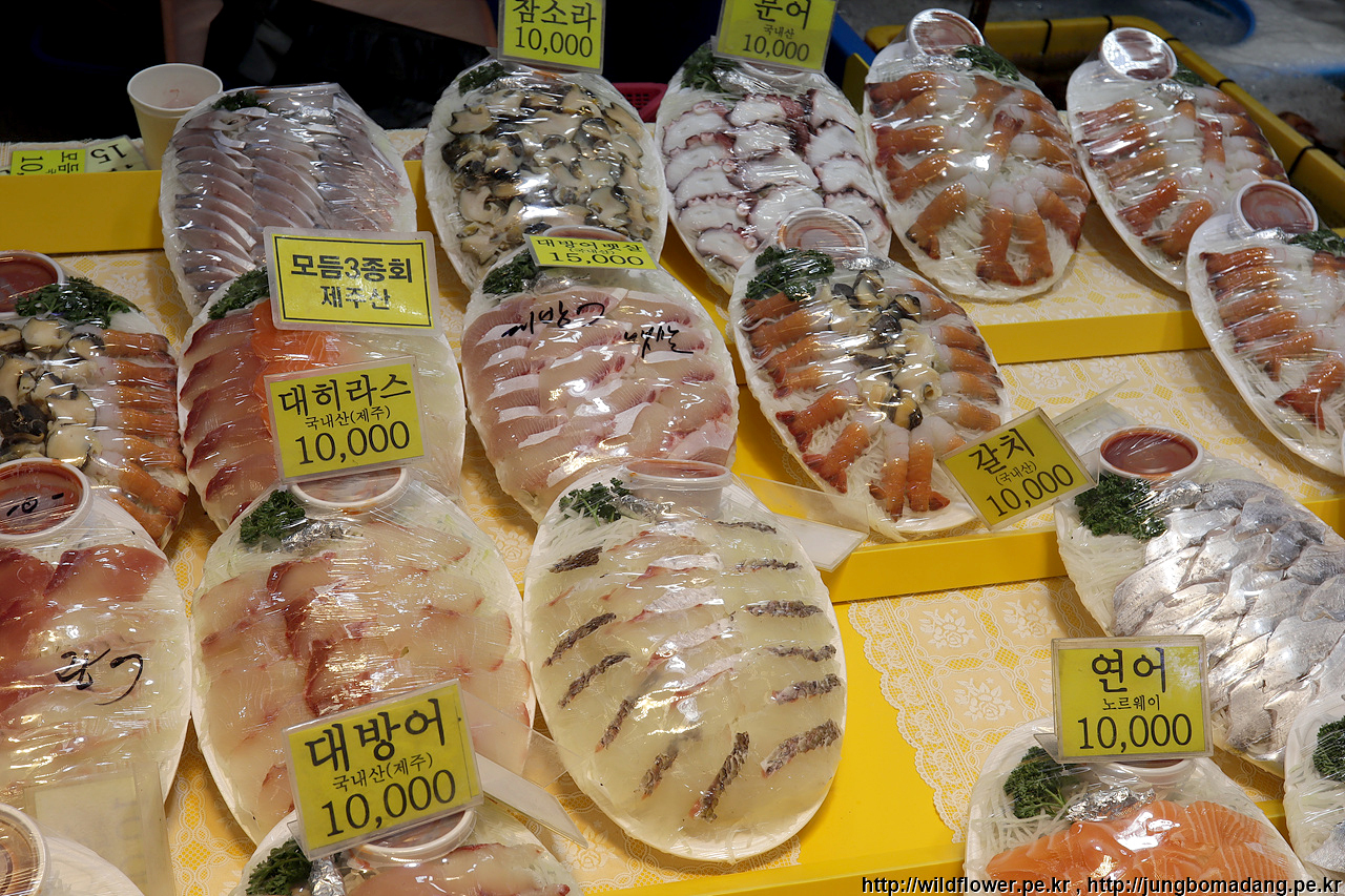 숙소에 가방 던져 놓고 동문 시장으로 향합니다. 회 3접시 득템