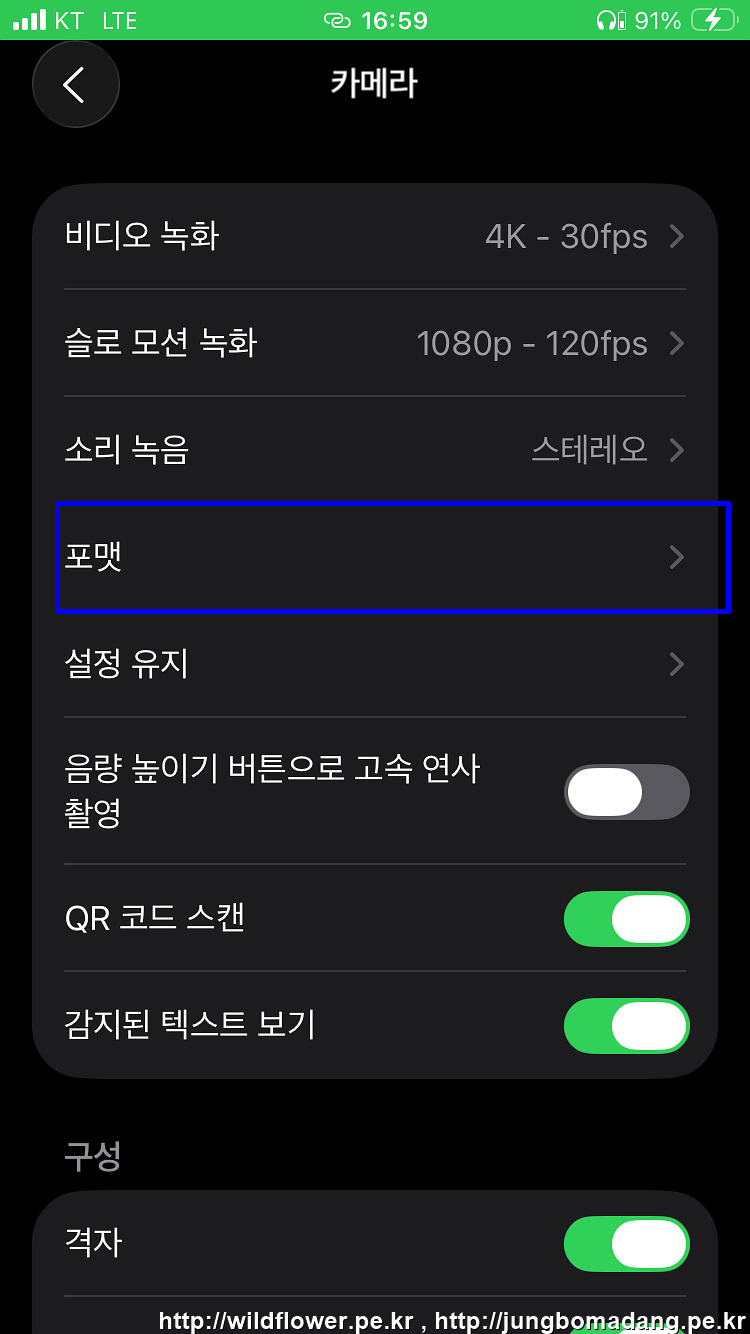 단계 하나. 아이폰에서 카메라(사진) 촬영 시 HEIC가 아닌 JPG 파일로 저장되게 설정하기 - 원치 않으면 단계 둘.로 넘어 갑니다.