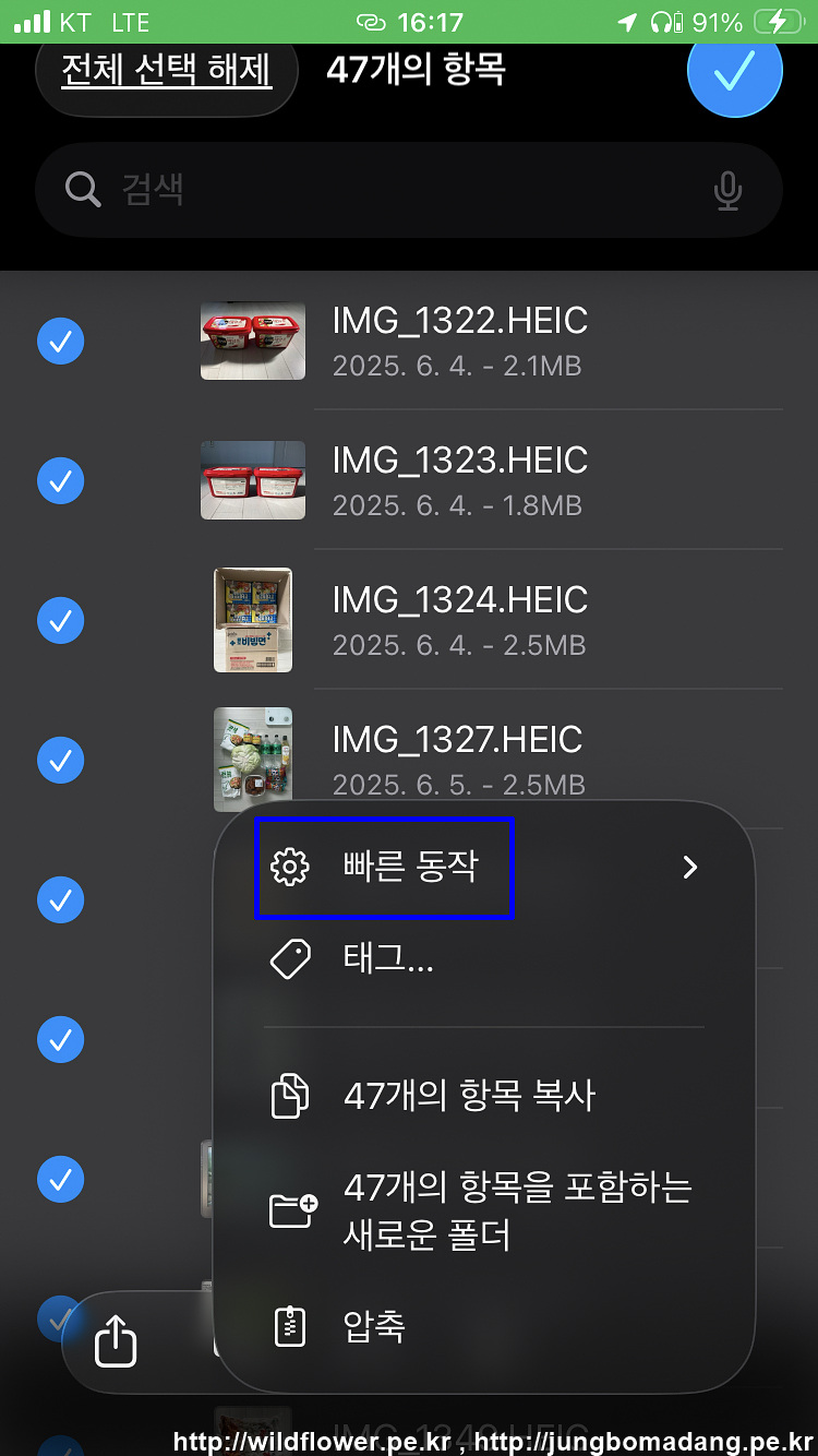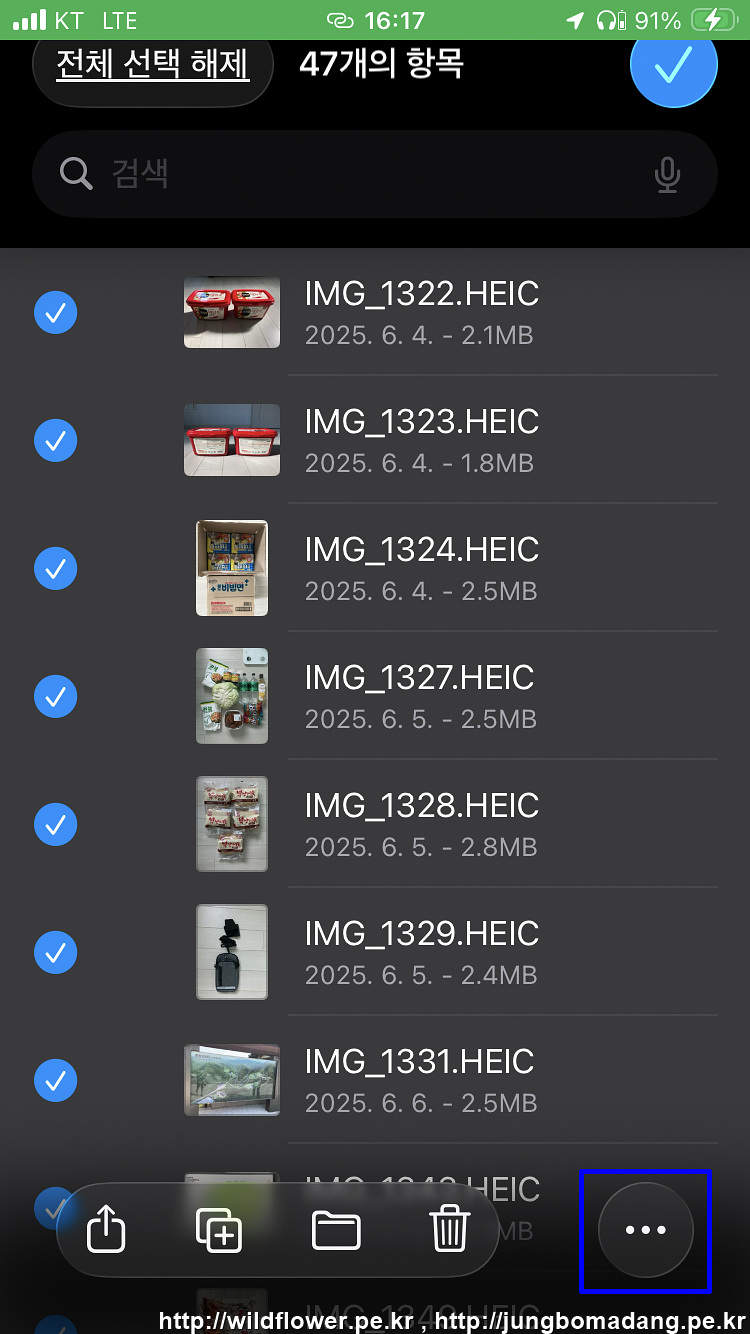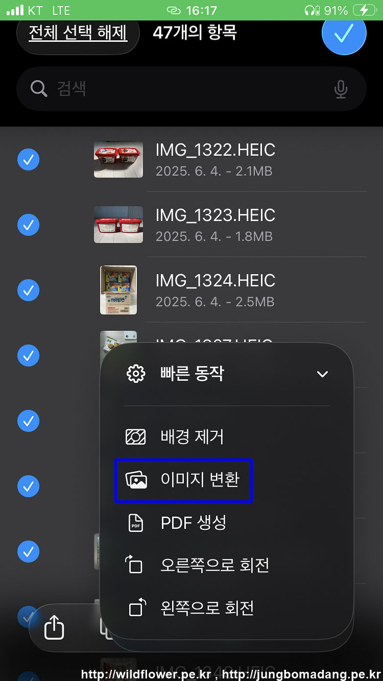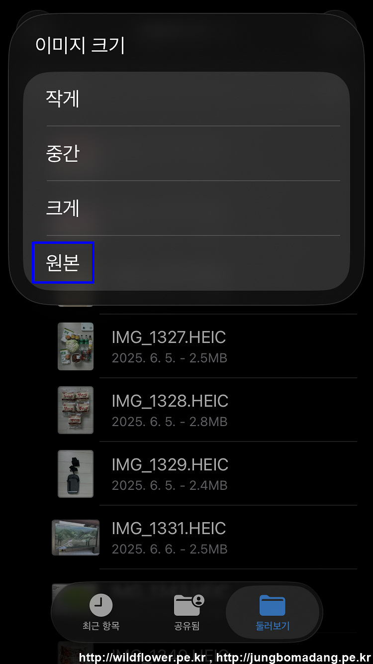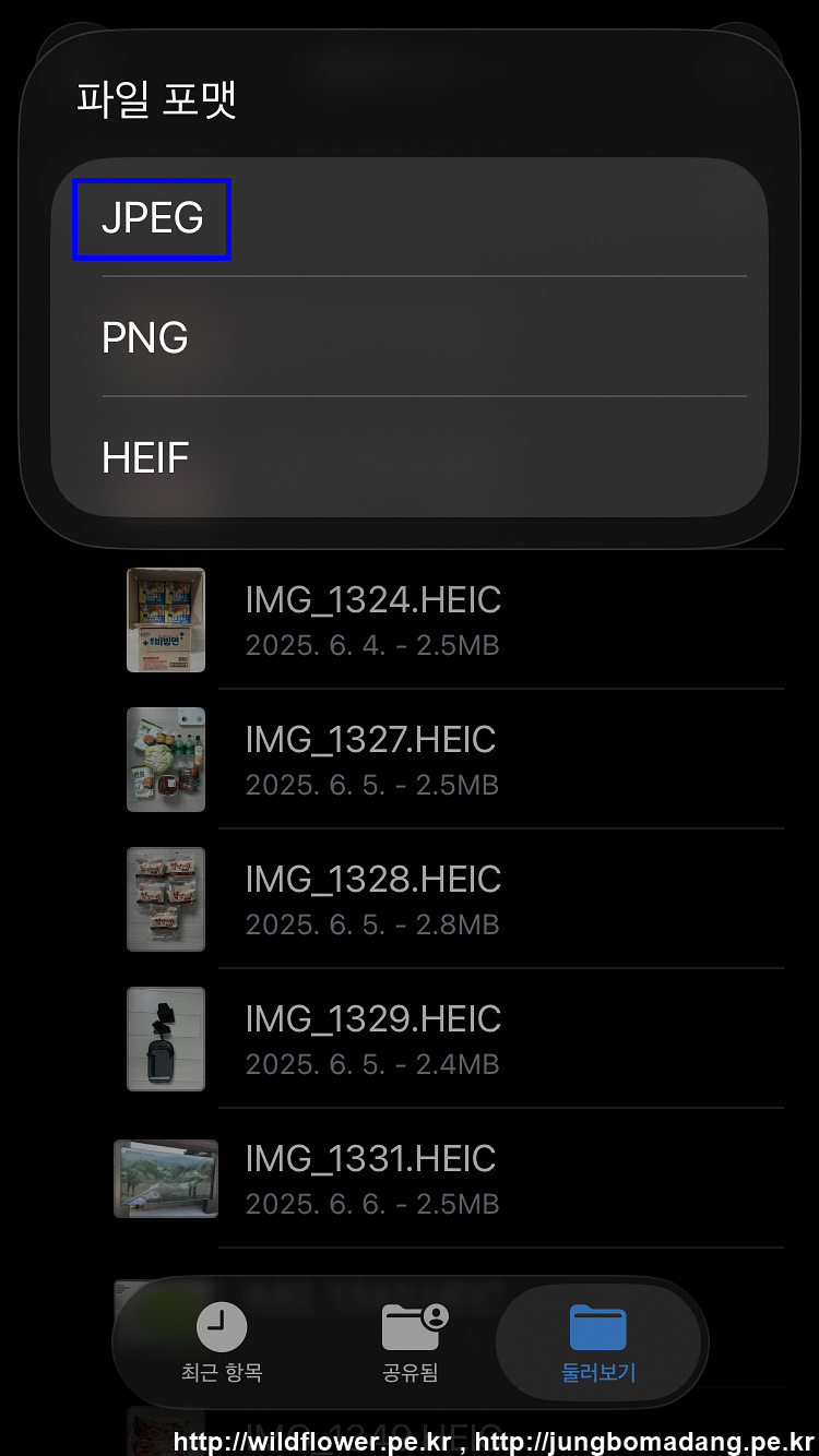 참고로 HEIC 파일은 JPG 파일보다 높은 압축률로 저장 공간이 절약되는 장점이 있지만, 활용하기 위해 JPG 파일로 변환을 해야하는 불편함이 있습니다.