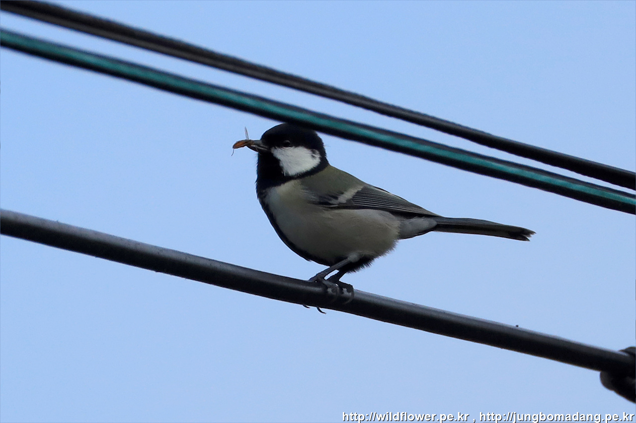 물까치 - 크롭 사진입니다. 가막살나무 열매를 노리고 있는 것으로 보입니다.