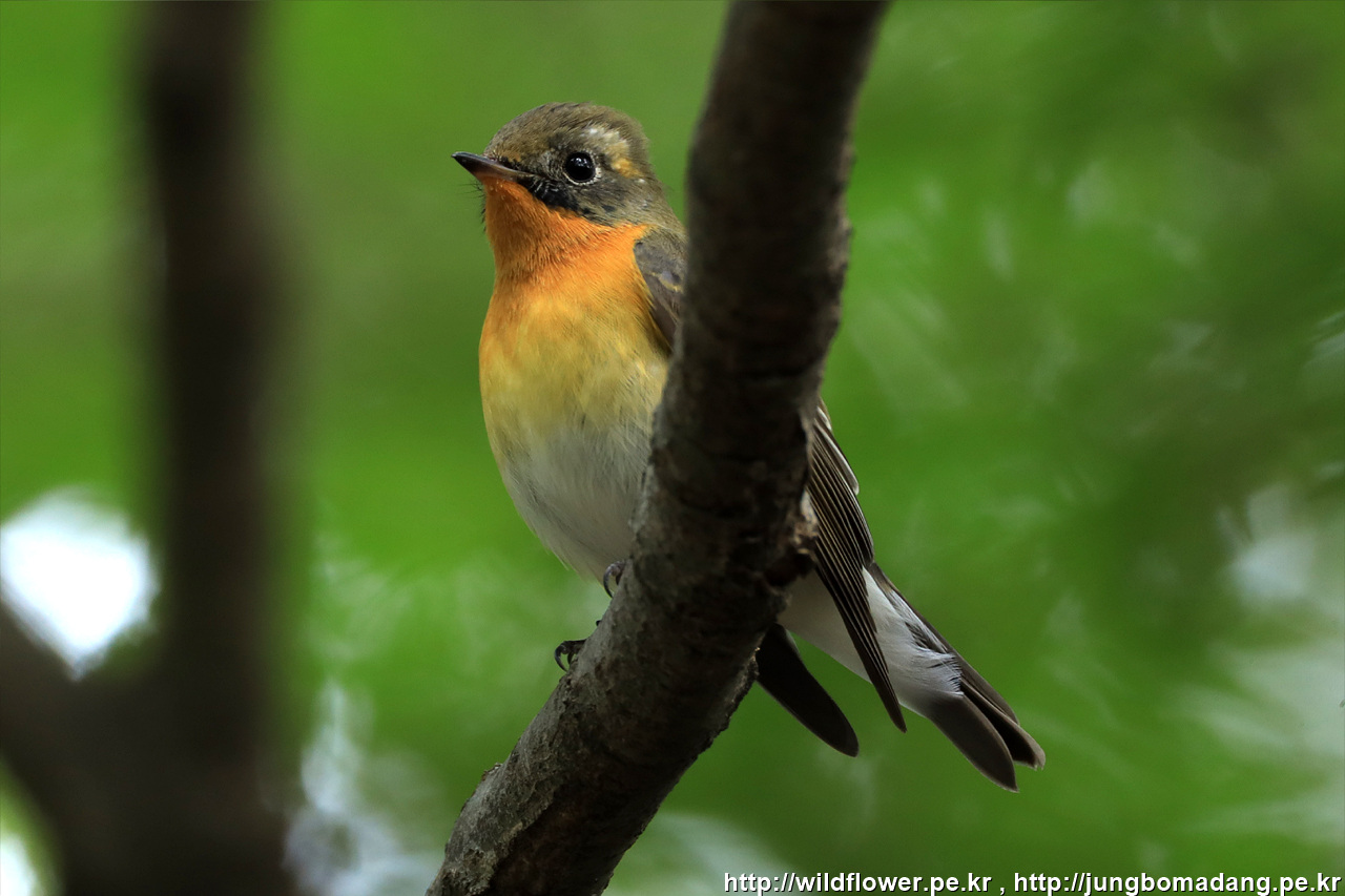 노랑딱새 - 수컷 여름깃. 크롭 사진입니다. 처음 만나요!