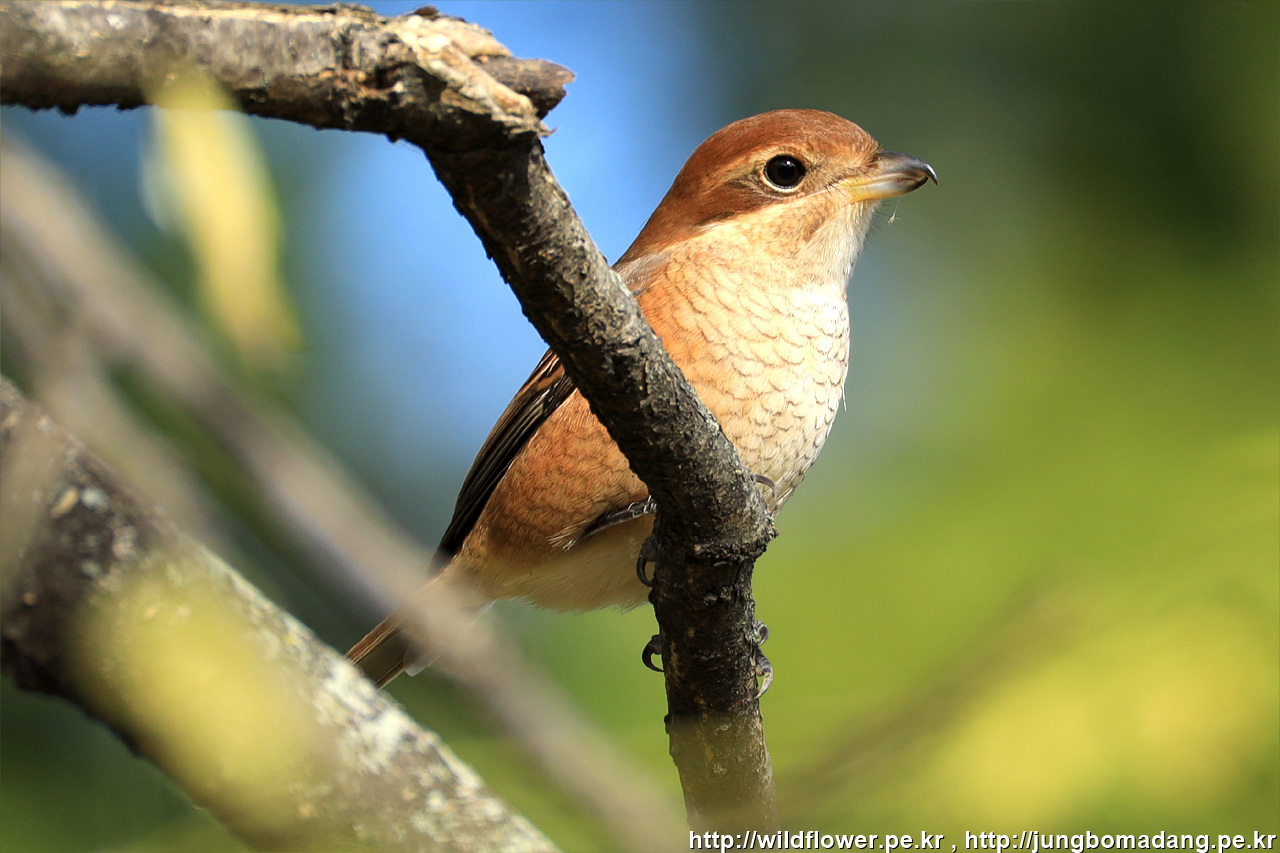 때까치 - 암컷. 크롭 사진입니다. 지금 보시는 장면은 용변을 보기위해 자세를 잡는 모습입니다.