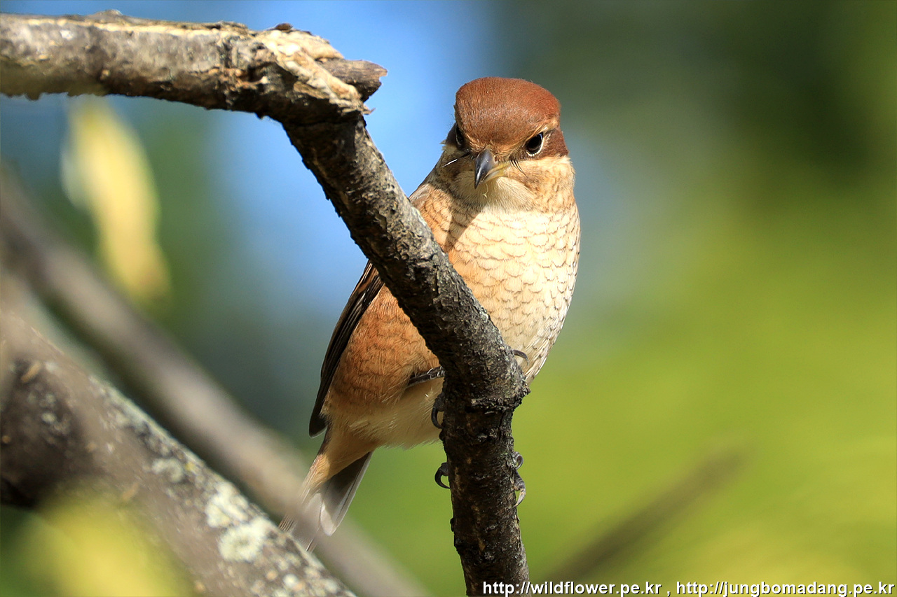 때까치 - 암컷. 크롭 사진입니다. 눈싸움에서 누가 이길 것인가?